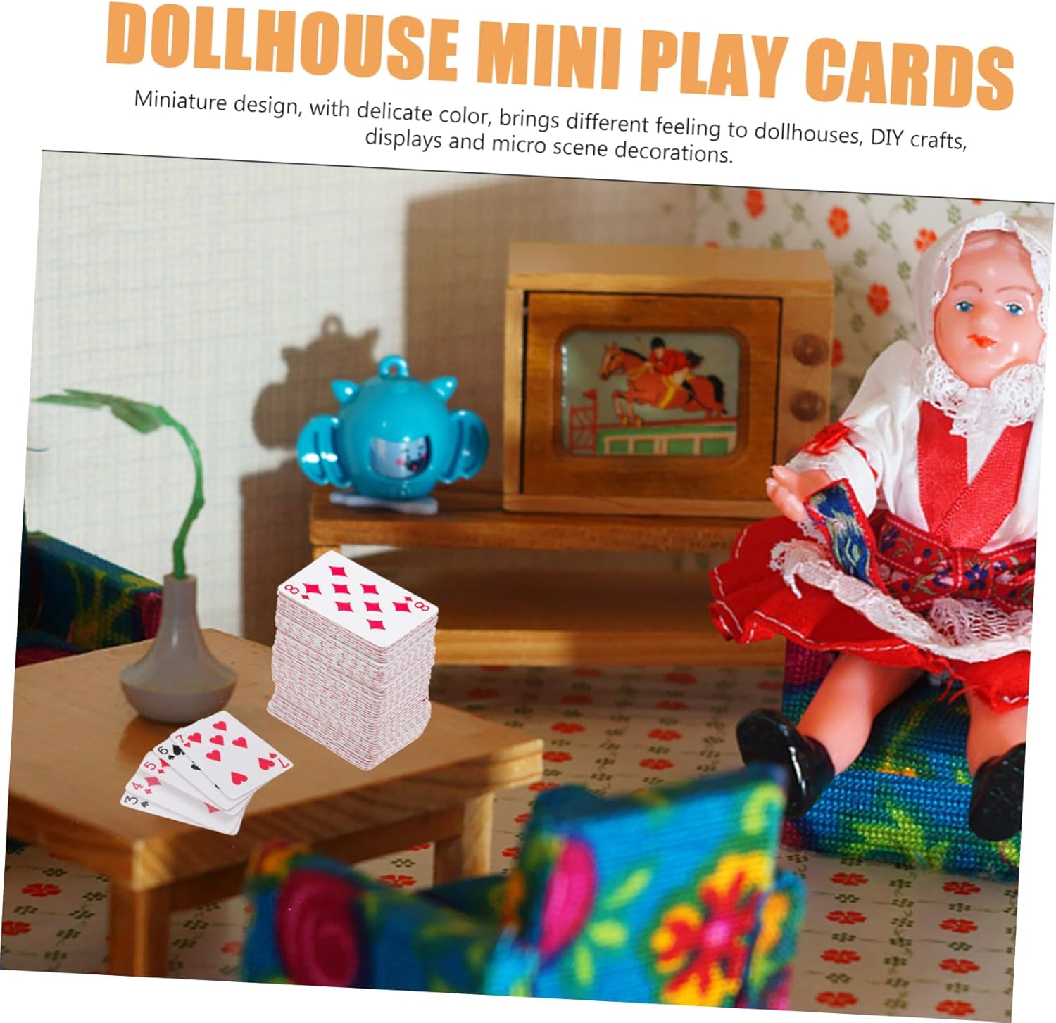 Mini decorazione della casa: dimensioni compatte, queste miniature di case delle bambole possono in gran coltivare l'abilità pratica dei bambini, nonché la creatività, i kit in miniatura. Giocattoli di carte: dimensioni compatte, facili da usare e comode da riporre, possono coltivare meglio l'abilità pratica e la capacità di comunicazione dei tuoi bambini, carte da gioco in miniatura. I bambini fingono ornamenti giocattolo: realizzati con materiali cartacei di alta qualità, hanno un alto grado di simulazione, queste mini carte da gioco sono per decorare la casa delle bambole del tuo bambino, i giocattoli della casa delle bambole per bambini. I bambini giocano a carte: lavorazione dettagliata, queste mini carte da gioco sono molto delicate per offrire ai tuoi bambini un umore più felice, mini carte da gioco ornamenti. Giocattolo per bambini: i giocattoli di carte da gioco simulati possono essere utilizzati come compleanno, scopi educativi, festa dei bambini e altro ancora, miniature di case delle bambole.