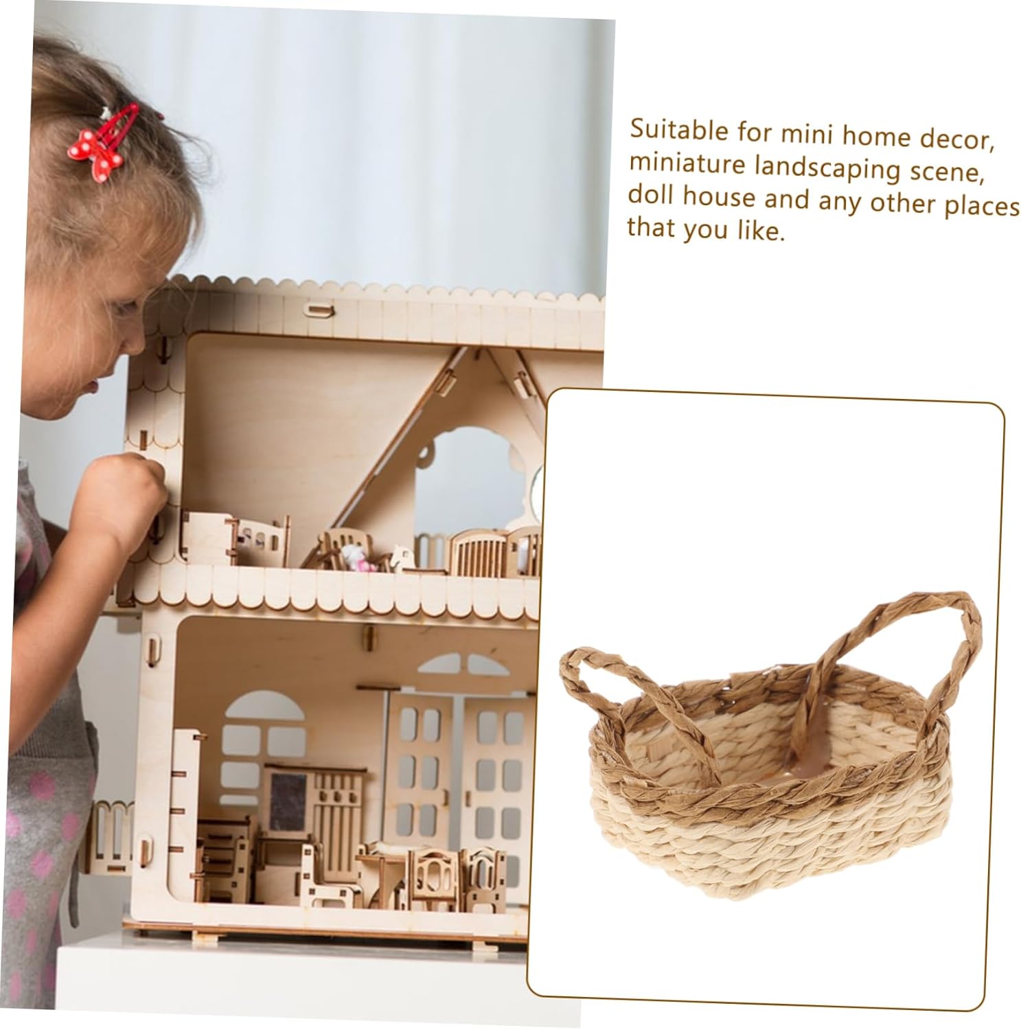 Ornamento per la casa in miniatura: mini cestini intrecciati dal design rustico possono abbinarsi agli stili di decorazione rustica e pastorale, mini cestini di vimini. Oggetti in miniatura per case delle bambole: leggero e compatto, questo cestino è facile da trasportare e riporre, permettendoti di mostrare il tuo gusto raffinato ovunque, mini cestino di simulazione. Accessori per case delle bambole in miniatura: questo mini cestino splendidamente realizzato mette in mostra le eccezionali abilità degli artigiani tradizionali, rendendolo un'aggiunta unica a qualsiasi collezione, mini forniture per la casa. Mini cestino in rattan: leggero, facile da spostare e puoi semplicemente usarlo per rendere diverso il tuo spazio domestico, cestini in miniatura. Accessori in miniatura: questo mini cestino finemente realizzato mette in mostra l'arte senza tempo della tessitura tradizionale, evidenziando l'abilità e la dedizione degli artigiani, mobili in miniatura.