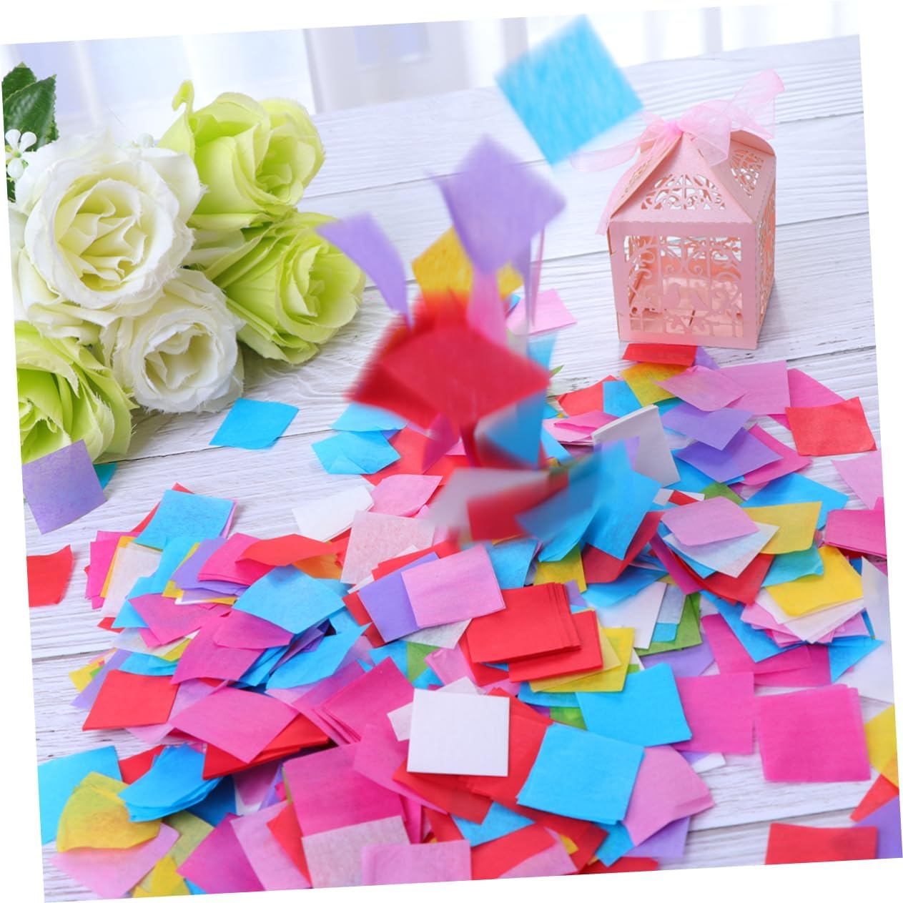 Forniture per fidanzamento e matrimonio: possono promuovere un'atmosfera celebrativa piacevole e romantica, coriandoli colorati Coriandoli colorati: coriandoli di carta colorati da utilizzare, coriandoli di carta quadrati Accessori decorativi in carta sottile: pratici e riutilizzabili, per dare alla tua festa più colori, coriandoli colorati Coriandoli di carta quadrati: sottili e leggeri, cadono lentamente dall'alto, creando un'atmosfera da mondo fatato, coriandoli colorati Coriandoli da matrimonio: ideali per diverse occasioni come casa, ufficio, bar, caffetteria, ecc. per fidanzamenti, carnevale, forniture per feste di matrimonio, coriandoli colorati