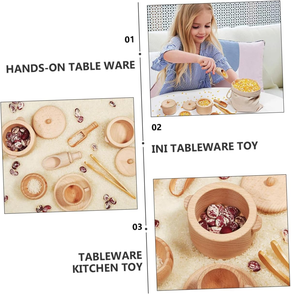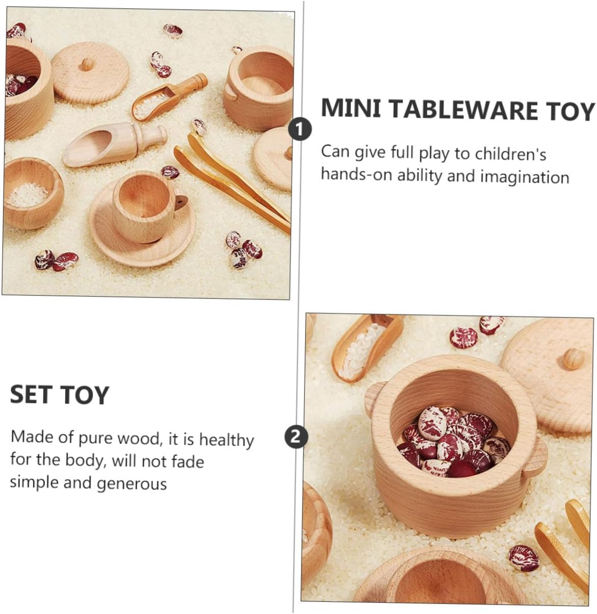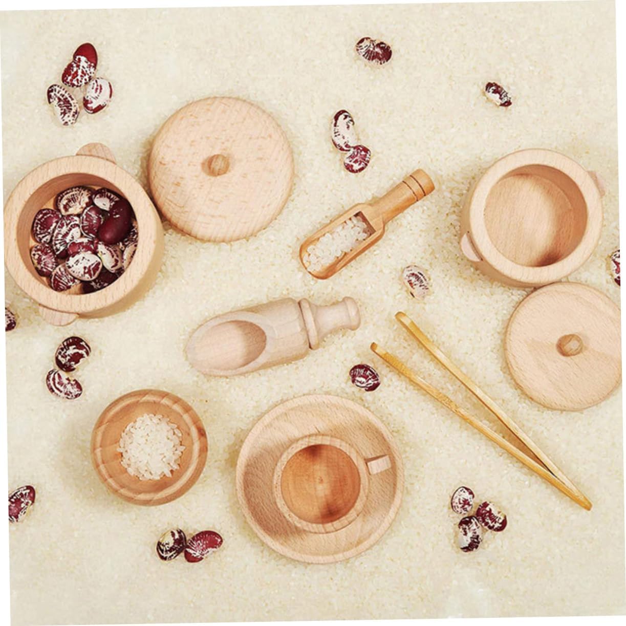 Strumenti sensoriali per la tavola: realizzati in legno , sono salutari per il corpo, non sbiadiscono, semplici e generosi, giocattolo per Strumento per stoviglie: il design in colore del legno è naturale, protegge la vista ed è molto adatto ai , giocattolo da cucina di simulazione Giocattolo da casa: strumenti sensoriali pratici sufficienti per coltivare abilità di vita reale, lavoro di trasferimento, capacità motorie e divertimento, giocattoli da tavola Mini giocattolo da tavola: oggetti di scena interattivi per far giocare i con i loro amici, mini utensili da cucina Giocattolo da tavola in legno: i bordi di tutti gli articoli sono perfettamente lucidati, solidi, ben fatti e simulano stoviglie