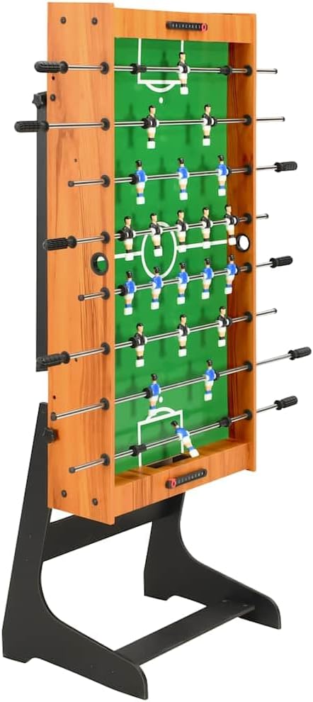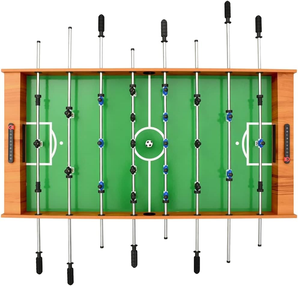 Con questo biliardino da 121 cm avrai un calcio balilla professionale a casa tua. Porta molto divertimento in qualsiasi ambiente: perfetto per giochi domestici, sale giochi e altre aree di intrattenimento. Questo biliardino è adatto per gare individuali o giochi di gruppo. Il tavolo è realizzato in robusto MDF e barre di acciaio cromato per garantirne la durata per anni. Le dimensioni del campo di gioco stampato corrispondono allo standard ufficiale del torneo, offrendoti un'esperienza di gioco realistica. Il tavolo ha 8 file per 4 file per squadra, 11 giocatori neri e 11 blu, nonché un portabicchieri a ciascuna estremità per consentirti di rimanere idratato durante il gioco