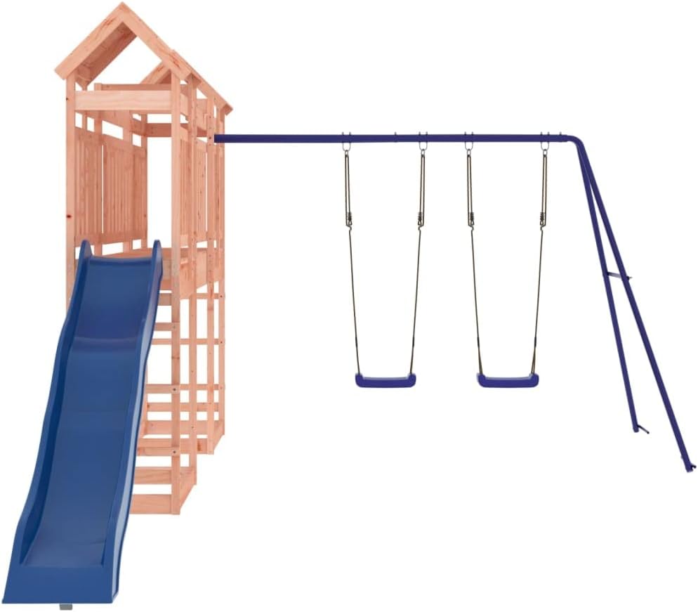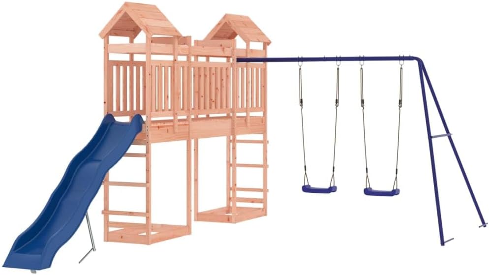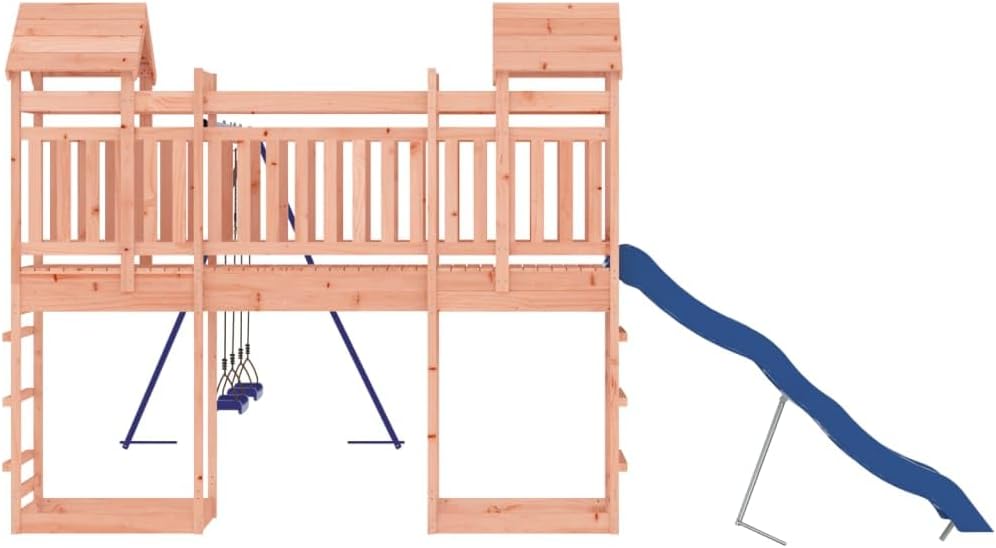 Vuoi dare ai tuoi figli la libertà di giocare a casa? Questo set da gioco all'aperto in legno trasforma il tuo giardino in un parco giochi adatto alle avventure fantasiose! 【Legno di Douglas massiccio:】 Questo telaio da giardino è realizzato in legno di douglas massiccio. Il legno massello di Douglas è un legno molto resistente che funziona bene per esterni. Il legno di Douglas è anche abbastanza forte da essere lavorato con la minima cura anche sotto l'influenza delle intemperie. 【Telaio robusto e stabile:】 Il telaio in legno del set da gioco garantisce robustezza e stabilità. Inoltre, i piedi a forma di A dell'altalena per bambini aiutano a mantenere l'equilibrio. 【Centri multi-attività:】 Il parco giochi ha una piattaforma di 118 cm di altezza e si distingue per lo scivolo ondulato, l'altalena doppia e le sabbiere. I tuoi figli possono anche invitare i loro amici a giocare insieme. 【Design riflettente】 Le ringhiere in legno che circondano il riparo sono progettate per garantire la sicurezza dei bambini mentre si divertono. Inoltre, il tetto in legno offre ombra ai tuoi bambini nelle calde giornate estive.