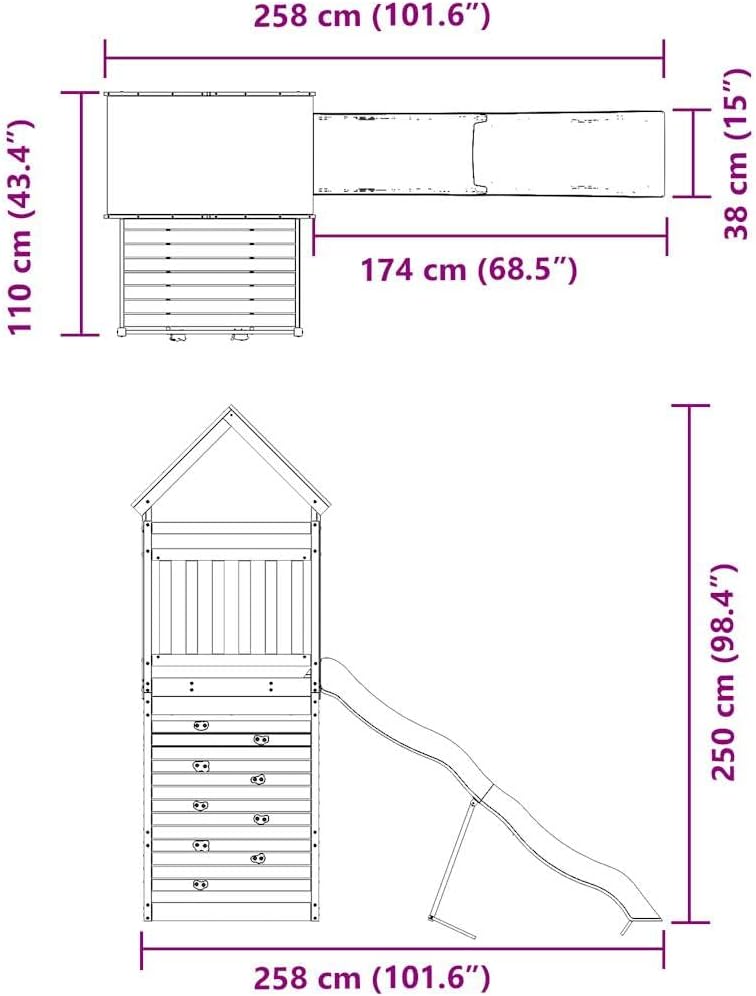 Vuoi dare ai tuoi figli la libertà di giocare a casa? Questo set da gioco all'aperto in legno trasforma il tuo giardino in un parco giochi adatto alle avventure fantasiose! 【Materiale durevole: questo telaio da arrampicata è realizzato in legno di pino massiccio. Il legno di pino massiccio è noto per la sua resistenza e durata. I suoi grani dritti e i nodi distintivi contribuiscono al suo fascino rustico. 【Telaio in legno stabile:】 Il telaio in legno della casetta da giardino garantisce la sua robustezza e stabilità. 【Centri multi-attività:】 Il telaio da arrampicata è dotato di una piattaforma di 118 cm di altezza e si distingue per lo scivolo ondulato e la sandbox. I tuoi figli possono anche invitare i loro amici a divertirsi. 【Design riflettente】 Le ringhiere in legno che circondano il riparo sono progettate per garantire la sicurezza dei bambini mentre si divertono. Inoltre, il tetto a forma di nuvola offre ombra ai tuoi bambini nelle calde giornate estive.
