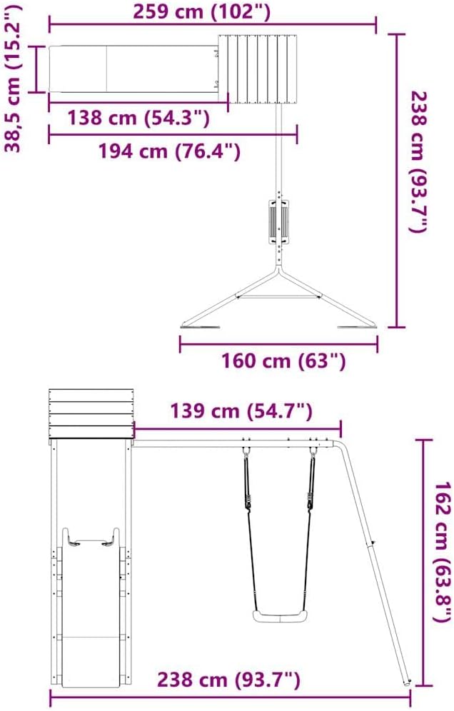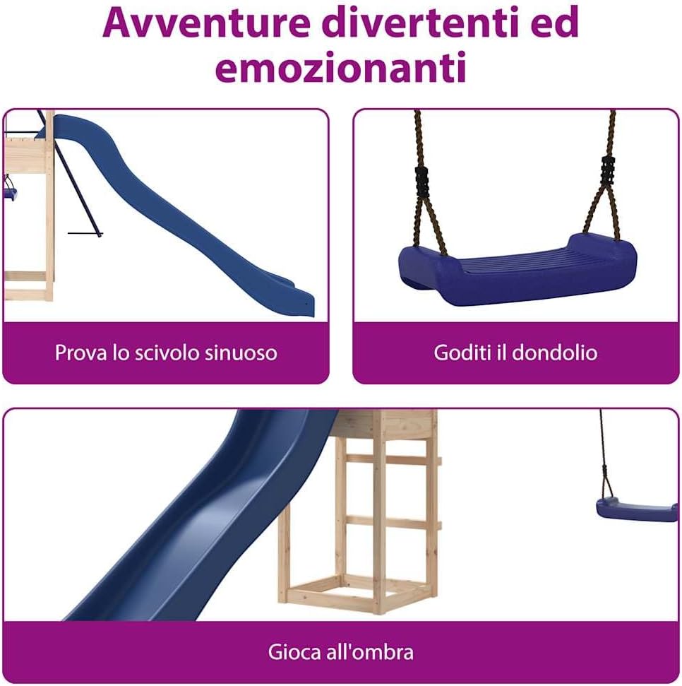 Volete dare ai vostri figli la libertà di giocare a casa? Questo set da gioco per esterni in legno trasforma il vostro cortile in un parco giochi per avventure fantasiose! 【Materiale resistente:】 questo parco giochi con scivolo è realizzato in legno di pino massello. Il legno massello di pino è un bellissimo materiale naturale. Il legno di pino ha le venature dritte e i nodi conferiscono al materiale il suo caratteristico aspetto rustico. 【Telaio robusto e stabile:】 il telaio in legno del parco giochi da giardino garantisce robustezza e stabilità. Inoltre, le gambe a forma di "A" dell'altalena per bambini consentono l'equilibrio. 【Centri multiattività:】 Il parco giochi è dotato di una piattaforma di 90 cm di altezza e si distingue per lo scivolo ondulato, un'altalena e una sabbiera. I vostri piccoli possono anche invitare i loro amici a unirsi al divertimento. 【Design accurato:】 il tetto in legno offre ombra ai vostri bambini nelle calde giornate estive.