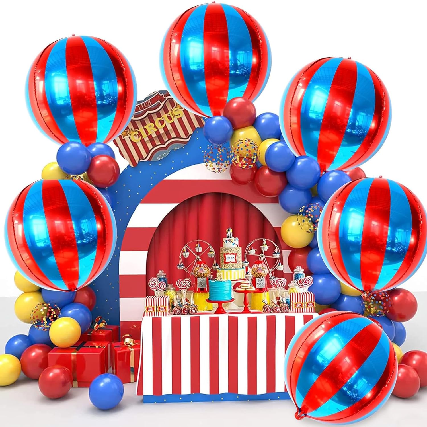 Palloncini da circo blu e rossi: questo set di palloncini a elio contiene 6 palloncini in foil blu e rossi, 55 cm, sufficienti per soddisfare i diversi palloncini decorativi della festa. Puoi appenderlo al soffitto, nel corridoio o come supporto fotografico, questa decorazione unica per le feste impressionerà i tuoi ospiti. Design unico: con colori a tema blu e rosso e illuminazione scenica, questo palloncino a elio dona la giusta consistenza e brillantezza alla tua festa, con una superficie liscia ed effetto riflettente. È come portarti in un vero evento circense, creando un'atmosfera gioiosa e creando un meraviglioso effetto festa. Sarà il momento clou assoluto della tua festa ideale. Palloncini di compleanno premium: questo palloncino blu è realizzato in pellicola di alluminio con effetto specchio metallico lucido, non facile da danneggiare, durevole e sicuro, riutilizzabile ed ecologico. Il palloncino decorativo di compleanno può essere gonfiato al 70% con aria o elio, quindi può galleggiare nell'aria, molto facile da usare. Regalo ideale: questi palloncini di compleanno VIKY sono perfetti per feste a tema circense, feste di compleanno per bambini, matrimoni, decorazioni di Capodanno, lauree, baby shower, feste di Natale, decorazioni per sale da ballo e altre occasioni importanti. Crea un'atmosfera divertente e rendi la giornata un'esperienza indimenticabile. Servizio clienti: faremo del nostro meglio per fornirti un servizio soddisfacente. Se avete domande prima o dopo l'acquisto, non esitate a contattarci. Te ne invieremo uno entro 24 ore.