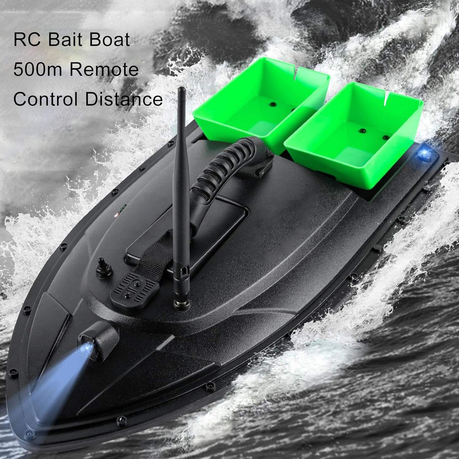 Telecomando da 1.500 M: questo peschereccio RC supporta il controllo remoto senza ostacoli entro un raggio di 500 metri, con un segnale ampio e stabile, quindi non sei legato alla lenza e migliora notevolmente l'efficienza della pesca. Plastica ABS: il corpo principale della barca da esca è realizzato in materiale tecnico ABS mediante stampaggio a iniezione una tantum, che ha una forte resistenza agli urti e all'usura e una lunga durata. Bello e generoso, robusto e stabile. Batteria di grande capacità: questo kit viene fornito con una batteria al litio da 12000 mAh, che può durare 4 ore di navigazione continua, con basso rumore e basso consumo energetico. La batteria si trova nella canna centrale della barca per un eccellente equilibrio e stabilità. . Luce notturna: progettata con una forte luce blu, ti aiuta a trovare e distinguere la direzione durante la pesca notturna e ha un certo effetto di attrazione sui pesci. Un unico design aerodinamico dello scafo previene efficacemente vari tipi di fenomeni di infiltrazioni e perdite. 5. Controllo flessibile: circuito dedicato e dispositivo RC di modulazione automatica della frequenza digitale, che risolve i problemi di interferenza reciproca, distanza RC ravvicinata e pesca fuori controllo quando navigano più navi. Supporta il cambio di velocità continuo, avanti e indietro e la rotazione flessibile a sinistra e a destra.