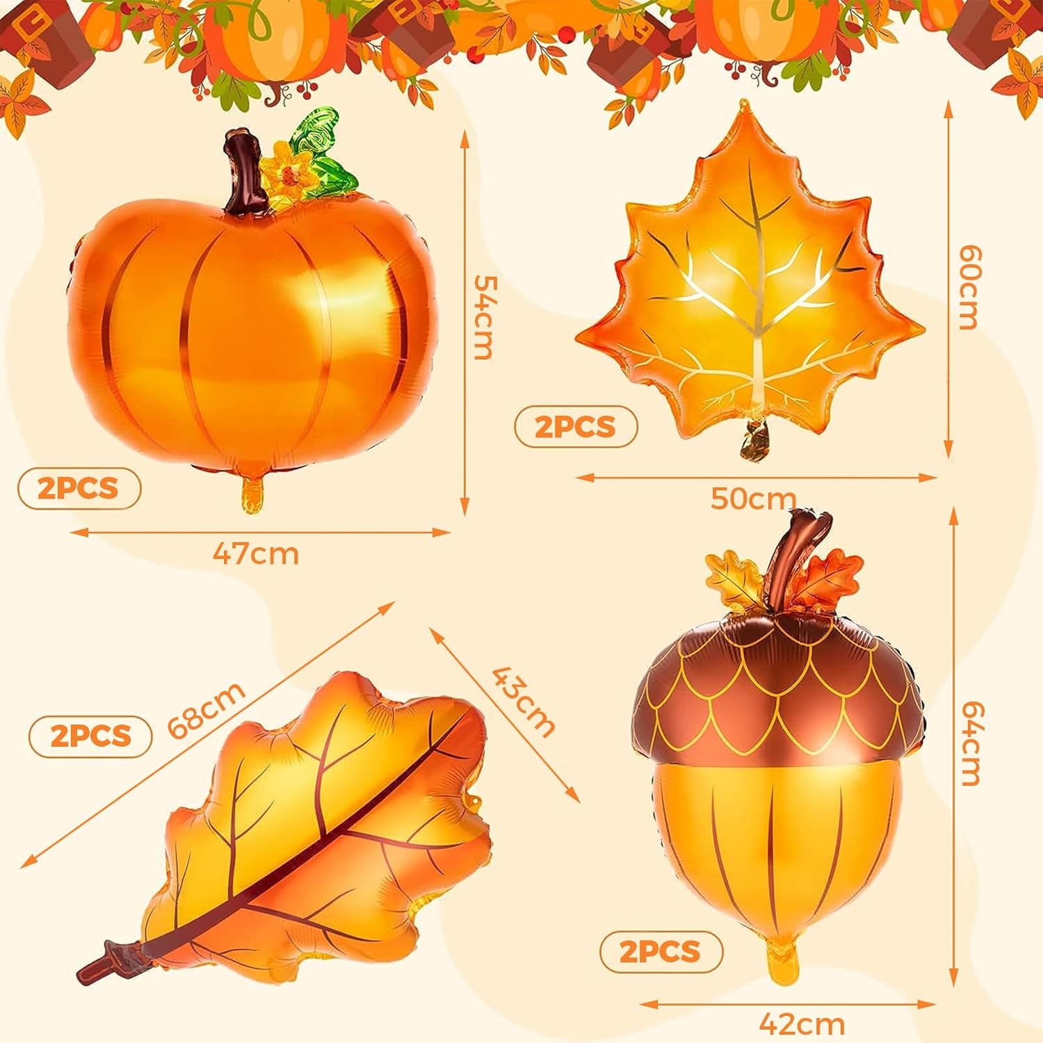 Set di palloncini del Ringraziamento - Riceverai 8 palloncini autunnali VIKY, inclusi 2 palloncini foglia d'acero, 2 palloncini foil, 2 palloncini pigna, 2 palloncini zucca, una grande quantità e una varietà di stili per soddisfare le tue esigenze di decorazione e decorazione. Materiale premium: i palloncini VIKY del Ringraziamento sono realizzati in un foglio di alluminio di alta qualità, affidabile e sicuro da usare, non facile da sbiadire o rompersi, riutilizzabile e durevole. Puoi riempirli con aria o elio, ma fai attenzione a non riempire eccessivamente i palloncini. Design carino - Questi palloncini foil VIKY del Giorno del Ringraziamento sono progettati con tema autunnale, con foglie di acero, pigne, zucche e altri disegni, i colori caldi e l'aspetto carino renderanno la tua festa più vivace e unica, regalandoti un'esperienza indimenticabile e impressionante. Utilizzo: basta premere l'apertura del palloncino dopo l'inflazione, la colla si chiude automaticamente, facile da gonfiare e chiudere, facile da gonfiare e sgonfiare, può galleggiare a lungo. Puoi appendere i palloncini zucca VIKY su pareti, soffitti, tavoli, finestre o installarli ovunque tu voglia decorarli, raggrupparli o usarli singolarmente. Uso versatile: puoi utilizzare questa decorazione per feste autunnali VIKY in molte occasioni all'interno o all'esterno, come per tutte le feste di compleanno, feste a tema foglia d'acero, decorazioni del Ringraziamento, feste autunnali, feste a tema autunnale, feste di benvenuto per bambini, ecc.