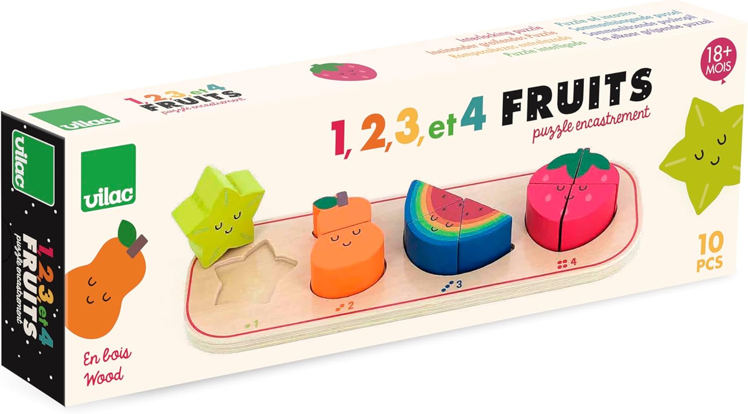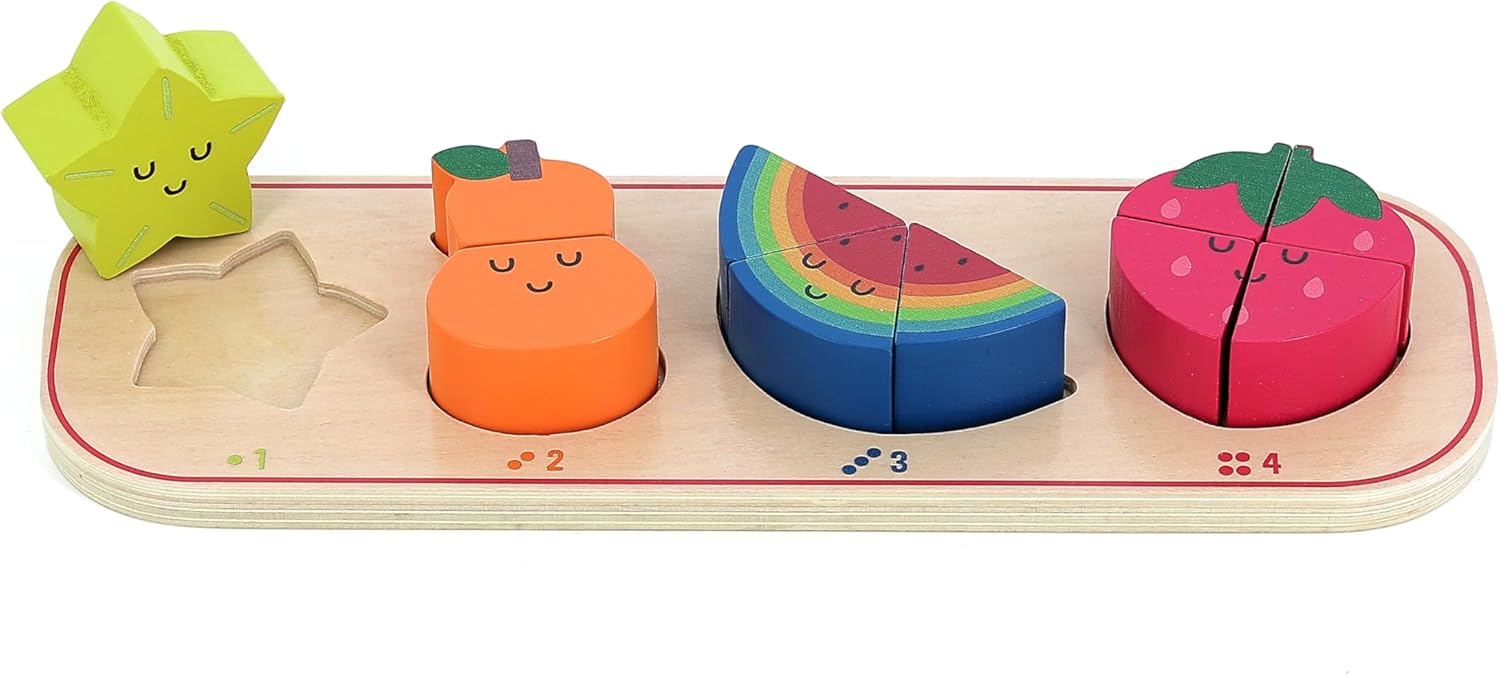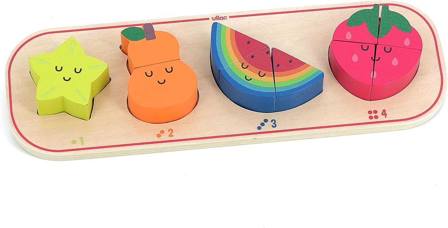 Un puzzle educativo e giocoso: questo gioco da incasso in legno include un supporto illustrato e 10 pezzi da incasso, aiutando i bambini a imparare a contare mentre scoprono i frutti colorati. Promuove le capacità motorie e la logica: grazie alle forme adatte alle piccole mani, questo puzzle stimola la coordinazione mano-occhio, il riconoscimento dei numeri e la concentrazione, mentre i bambini sono divertenti. Illustrazioni moderne di Andy Westface: con il suo design morbido e colorato, questo puzzle risveglierà la curiosità dei bambini e li aiuterà a combinare i numeri con i frutti giusti in modo intuitivo. Legno naturale e lavorazione sicura: realizzato in legno proveniente da foreste gestite in modo sostenibile, con vernice atossica e bordi arrotondati, questo giocattolo garantisce un utilizzo sicuro e duraturo. Un regalo ideale per il primo apprendimento: a partire dai 18 mesi, questo puzzle educativo è un'ottima idea regalo per compleanno o Natale, fornendo un primo approccio a numeri e forme.