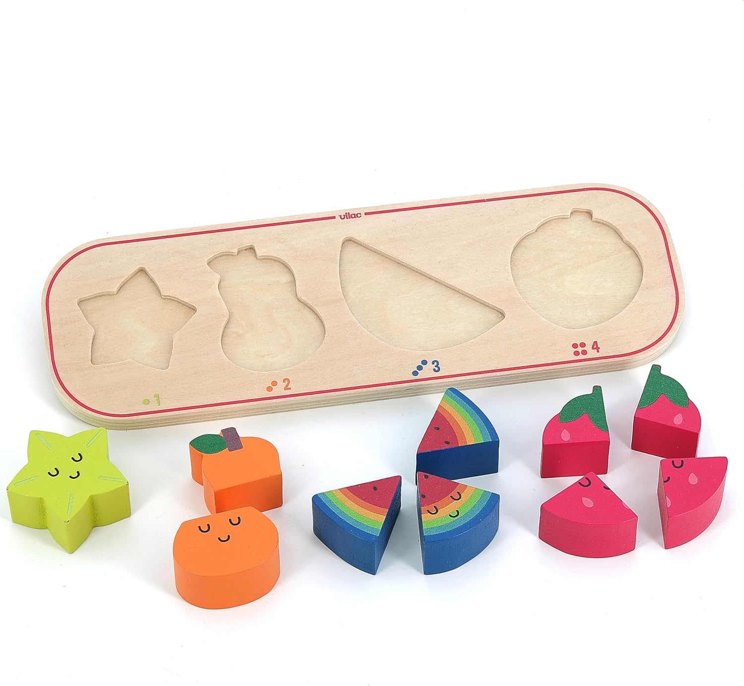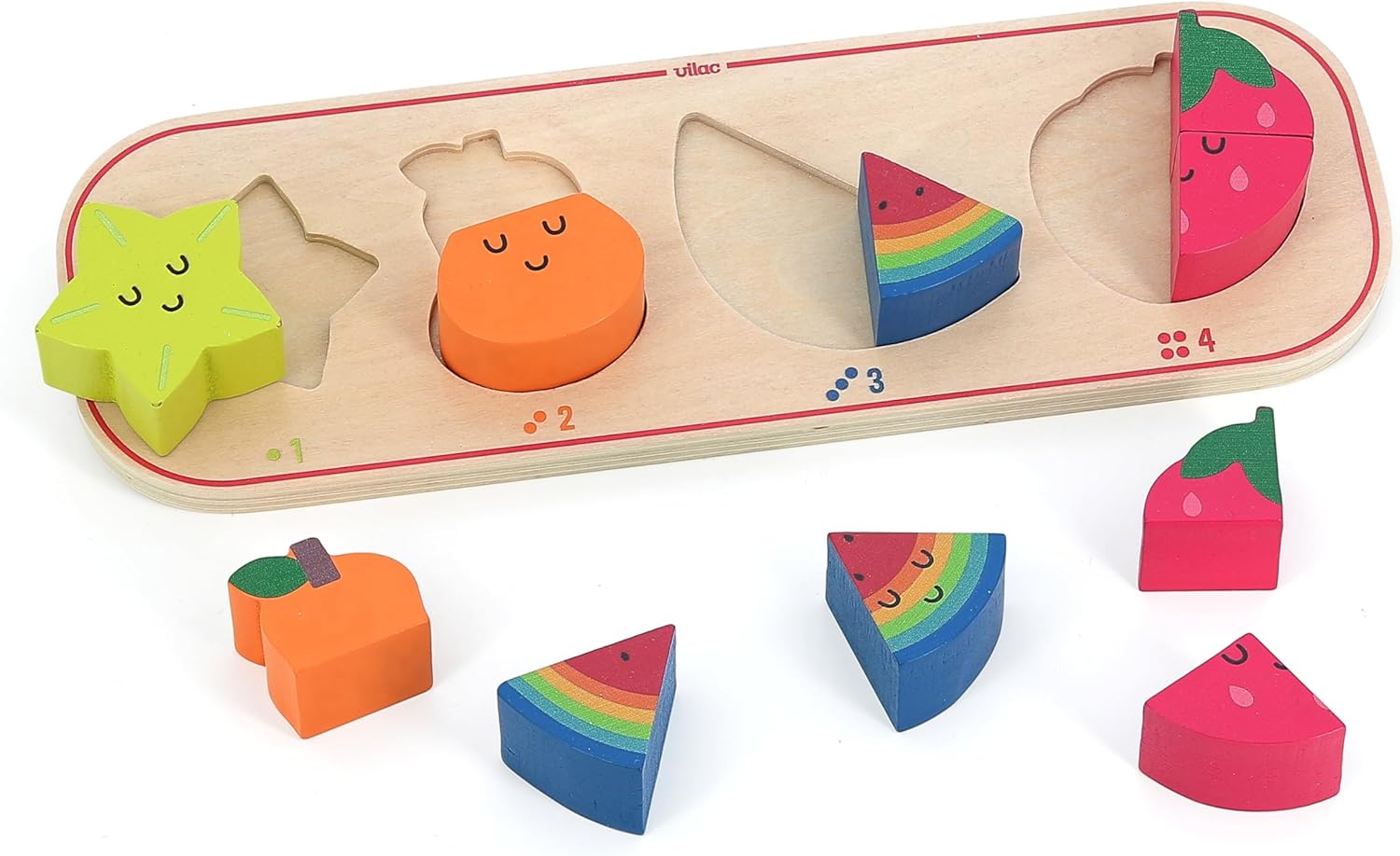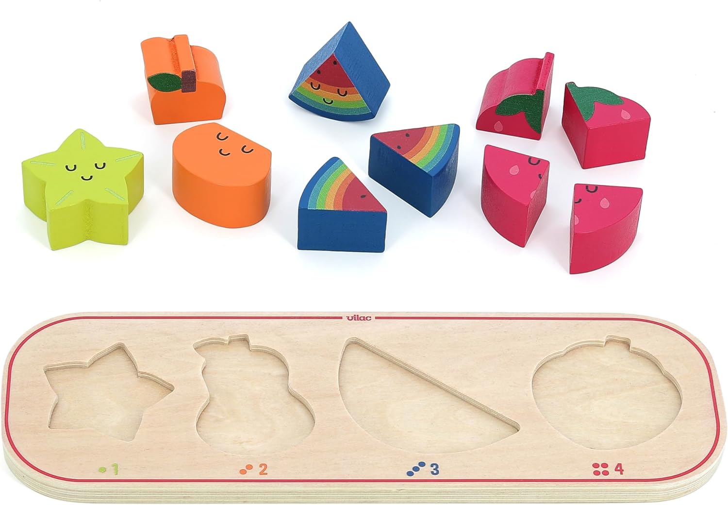 Un puzzle educativo e giocoso: questo gioco da incasso in legno include un supporto illustrato e 10 pezzi da incasso, aiutando i bambini a imparare a contare mentre scoprono i frutti colorati. Promuove le capacità motorie e la logica: grazie alle forme adatte alle piccole mani, questo puzzle stimola la coordinazione mano-occhio, il riconoscimento dei numeri e la concentrazione, mentre i bambini sono divertenti. Illustrazioni moderne di Andy Westface: con il suo design morbido e colorato, questo puzzle risveglierà la curiosità dei bambini e li aiuterà a combinare i numeri con i frutti giusti in modo intuitivo. Legno naturale e lavorazione sicura: realizzato in legno proveniente da foreste gestite in modo sostenibile, con vernice atossica e bordi arrotondati, questo giocattolo garantisce un utilizzo sicuro e duraturo. Un regalo ideale per il primo apprendimento: a partire dai 18 mesi, questo puzzle educativo è un'ottima idea regalo per compleanno o Natale, fornendo un primo approccio a numeri e forme.