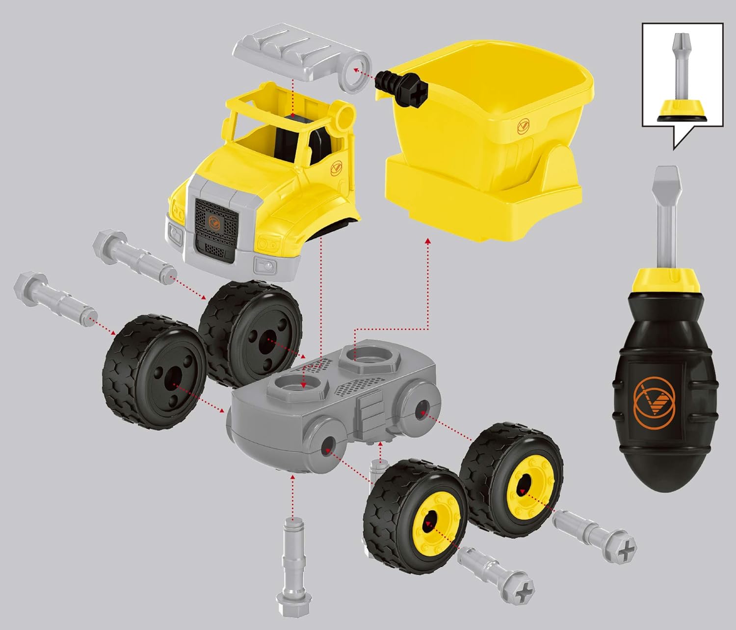 Mezzi da lavoro smonta e rimonta Assortito in 3 modelli Cacciavite incluso Accessori da cantiere inclusi Dimensione scatola: 25,5 x 18 x 9,5 cm Do It Yourself Sviluppa le abilità creative, cognitive e manuali dei bambini Stimola l'immaginazione dei bambini