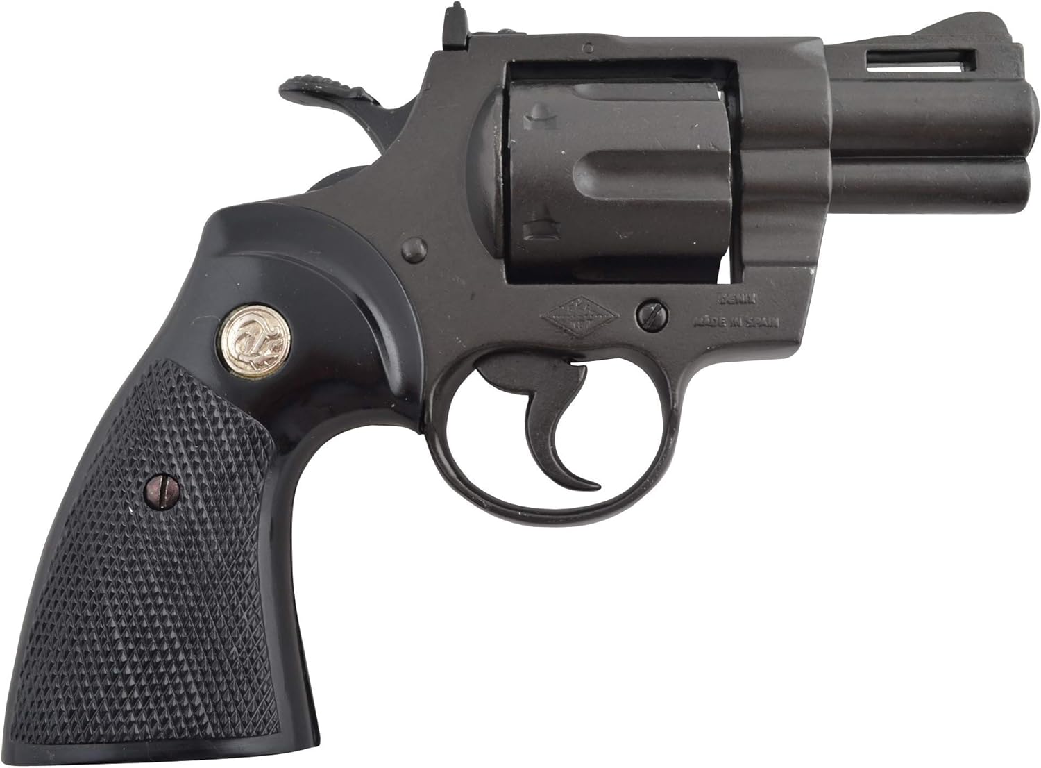 Pistola giocattolo in metallo, 12 colpi Modello triton, nero A tamburo Impugnatura in finto legno Munizioni non incluse Prodotto in italia Lunghezza pistola: 23 cm Incluso nella confezione distintivo argentato