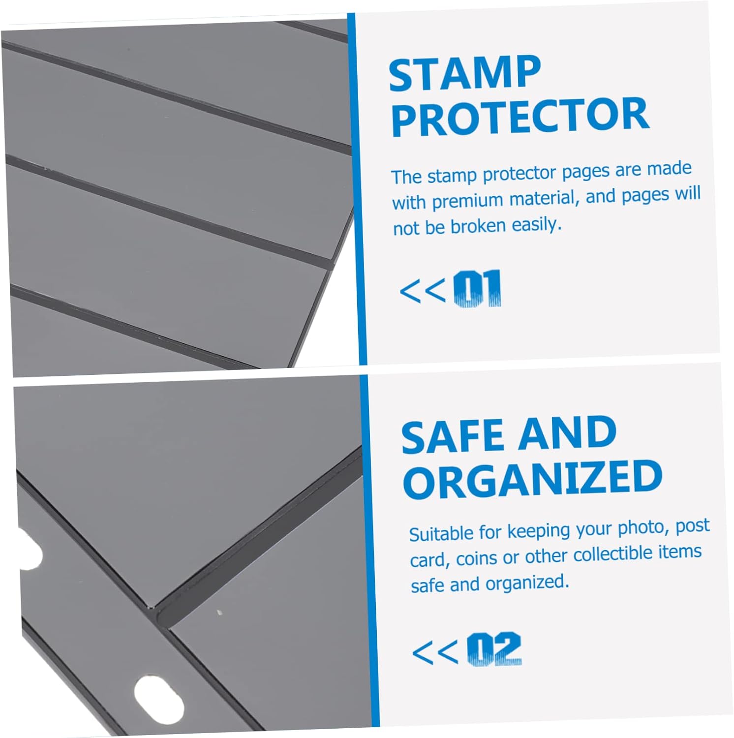 Francobolli trasparenti: questa è una pagina adatta per famiglie, amici e amanti durante le vacanze, pagina per collezionisti di francobolli. Comodo porta francobolli: può essere pratico per i tuoi amici che amano collezionare francobolli e saranno molto felici, porta francobolli. Raccoglitore di adesivi: la pagina del nostro album di francobolli è liscia e ti senti a tuo agio quando la tocchi, supporto trasparente. Portabadge bifacciale: adatto per la conservazione di tutti i prodotti filatelici, dal francobollo singolo, ai francobolli alle cartoline, fotografie di banconote, carte e maxime, ecc, carte semplici. Portafrancobolli: buon rapporto qualità- , puoi questi pratici prodotti a un .