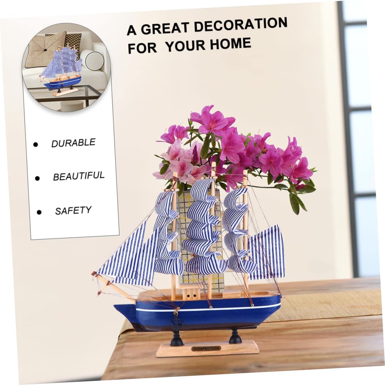 Decorazione da scrivania: può essere utilizzata come bellissima macchina, ufficio, porta d'ingresso, soggiorno o statua decorativa, modello di barca a vela Modello in legno: una buona scelta per amici o , decorazione della casa Modello: un fantastico compleanno, natale, festa dei , vacanze e altri giorni speciali in cui vuoi mostrare qualcosa di diverso a tuo figlio o , arredamento per ufficio in legno Barca a vela: adozione di materiale in legno, modello di barca a vela creativo durevole e sicuro Decorazione modello barca a vela: realizzata in legno e tessuto, sicura e decorativa, modello