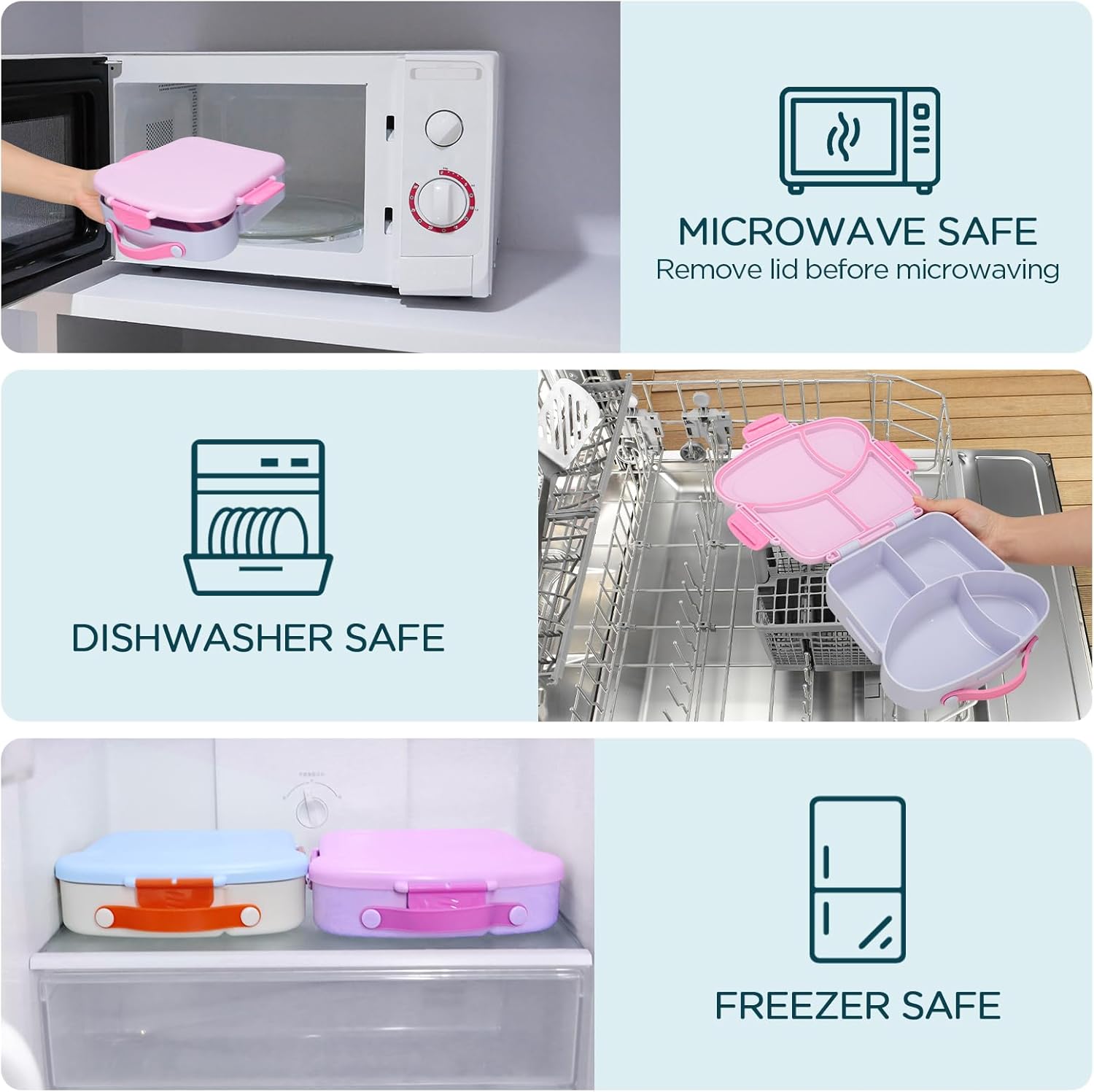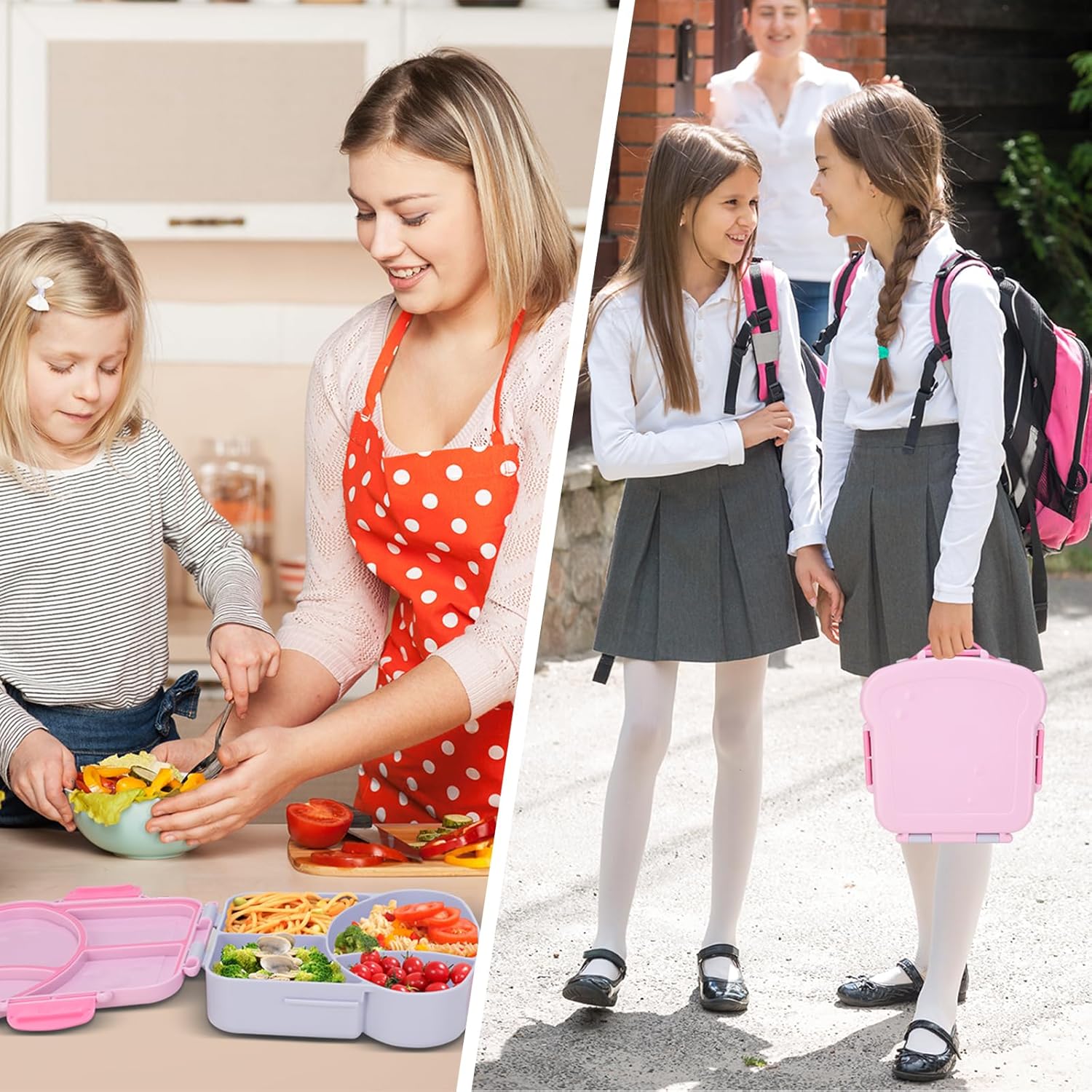 Materiali Sicuri & Atossici:La lunch box bambini è realizzata in PP di alta qualità, privo di BPA, inodore e resistente alla masticazione, sicuro per i bambini. Adatta al microonde (-20°C ~ 120°C) – aprire sempre il coperchio durante il riscaldamento. 4 Scomparti Indipendenti & Portatile:Questa portapranzo bambini scuola offre 4 scomparti fissi + 1contenitore per salsa separato per organizzare diversi alimenti. Ogni scomparto ha una guarnizione di tenuta per evitare fuoriuscite e mescolamenti di odori. Con maniglia per un trasporto facile – perfetta per scuola, schiscetta o picnic. Include Posate & Contenitore Salse:La porta pranzo con posate include un cucchiaio e una forchetta ergonomici, più un piccolo contenitore per salse – ideali per le mani dei bambini. L’accessorio pratico rende i pasti fuori casa più semplici. Dimensioni Ottimali & Multiuso:Con dimensioni 23×20,5×5,5 cm (capacità 900 ml), questa porta pranzo ermetico si inserisce facilmente in zaini o borse. Perfetta per asilo, viaggi o gite in famiglia. Robusta e di lunga durata. Design Divertente & Facile da Pulire:La porta pranzo bambini ha un simpatico design a forma di pane che piace ai bambini. Realizzata in materiale ecologico, senza spigoli taglienti e con una superficie liscia per una pulizia senza residui.