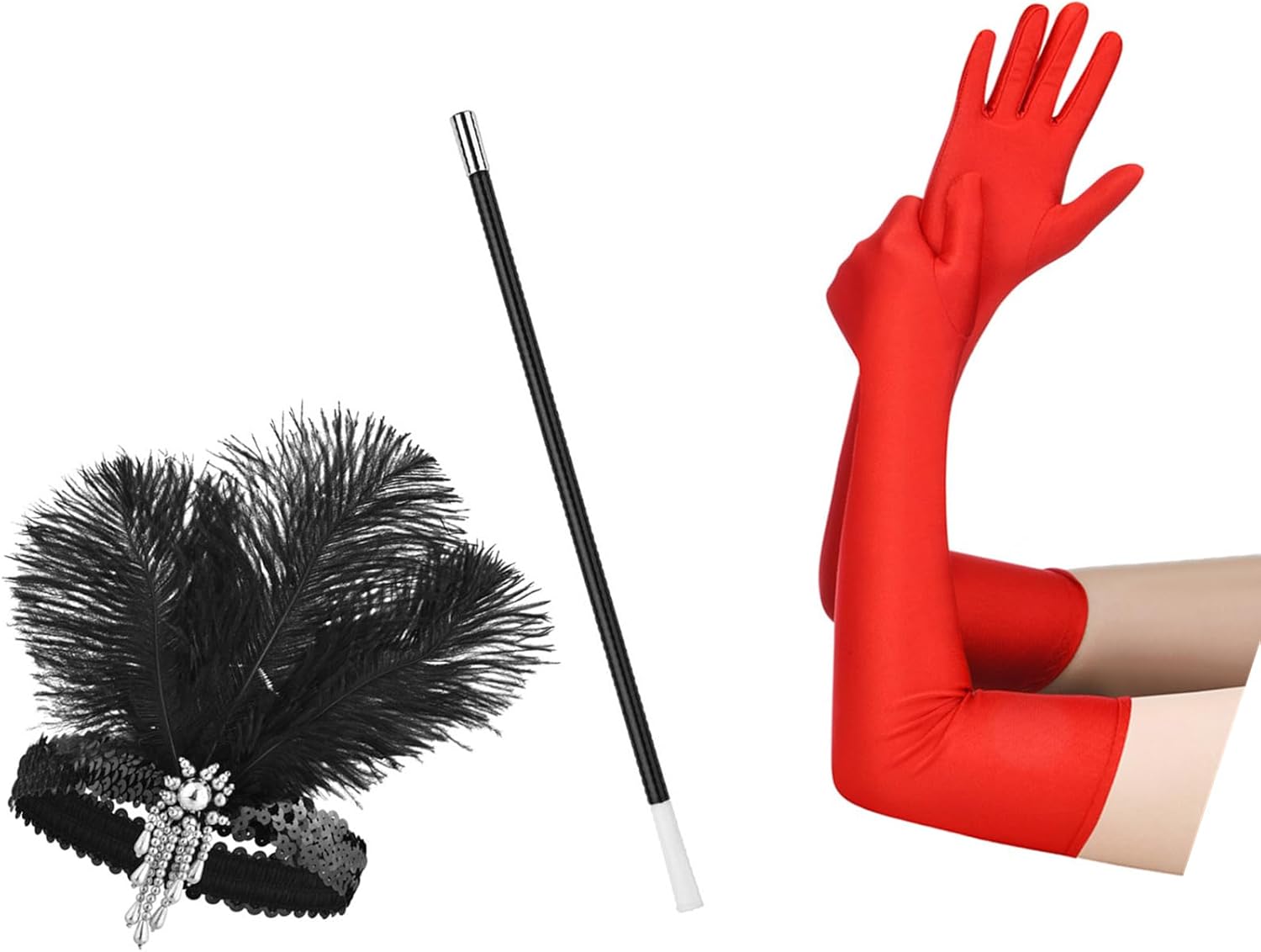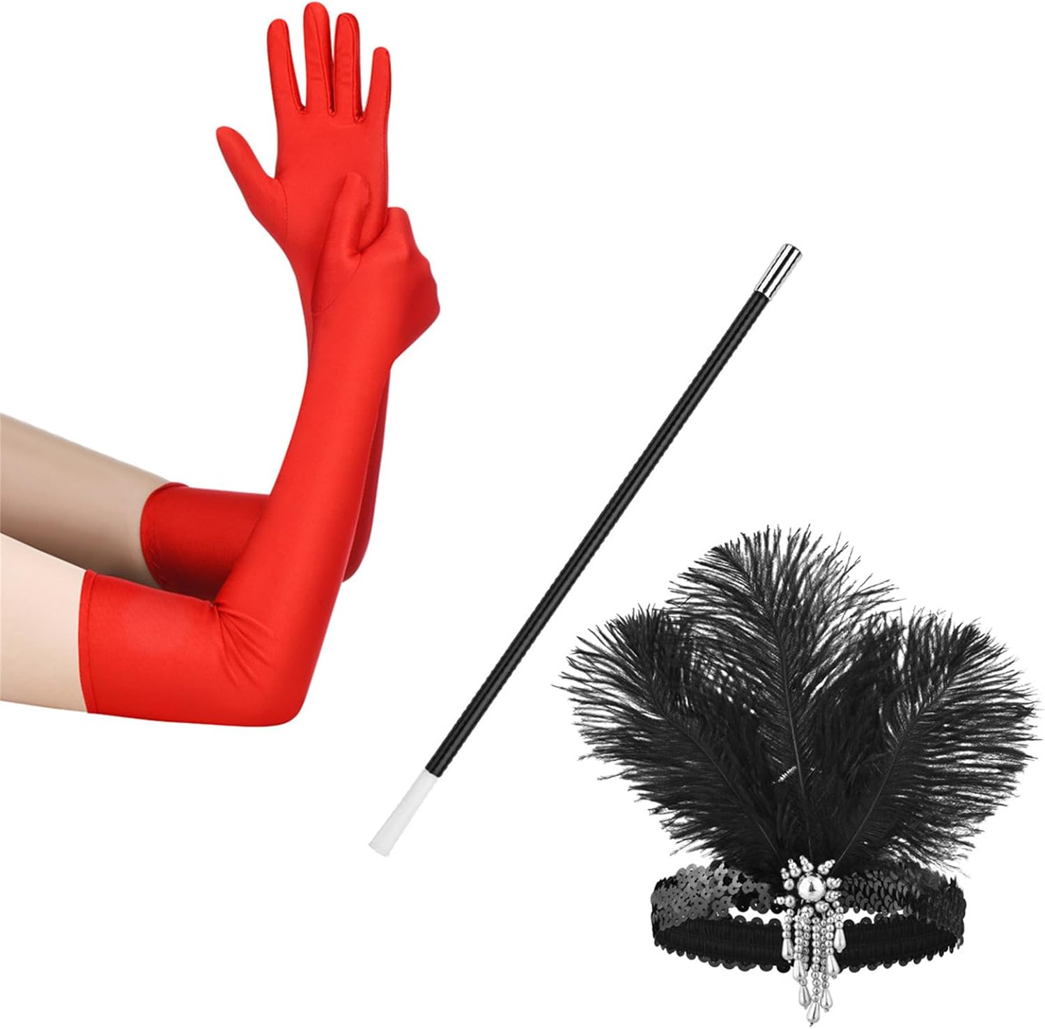 Vintage anni '20 Flapper Donne Accessori Costume Fascia Raso Guanti 20s Cocktail Party Dress Up Suit Caratteristiche: Distinguiti la tua prossima festa con questo vestito vintage anni '20 Costume Set! L'elegante fascia e i guanti in raso di lunghezza operale ti renderanno al centro dell'attenzione. Realizzato con grande questo set di accessori è progettato per essere comodo e la fascia e il supporto nero per sigarette aggiungono un tocco di autenticità al tuo look ispirato agli anni '20. Per adolescenti e adulti, questo set di accessori per costume è ideale per coloro che amano vestirsi e distinguersi dalla massa. Che tu stia partecipando a una festa a tema o a un evento cosplay, questi accessori completeranno il tuo look. Dalle feste agli spettacoli teatrali, questo set di accessori è versatile e può essere indossato in vari ambienti. Sii thestar dello spettacolo alla tua prossima festa di Halloween o aggiungi un tocco di eleganza a un evento formale. Esprimi il tuo stile unico e abbracciante degli anni '20 con questo costume vintage anni '20. per la moda in avantiindividui che vogliono fare una dichiarazione e creare ricordi indimenticabili. Specifiche tecniche: Dimensioni del prodotto: circa Cerchietto con cappuccio da 56 a 60 cm. Tessuto Opzione di colore: guanti neri/guanti bianchi/guanti rossi/guanti grigi/guanti champagne La confezione include: 1 set di accessori da donna anni '20 (1 guanti, 1 fascia, 1 portasigarette). Nota: Considerare un margine di errore di 1-2 cm dovuto alla misurazione manuale. A causa della differenza tra i diversi monitor, l'immagine potrebbe non riflettere esattamente il colore dell'articolo.