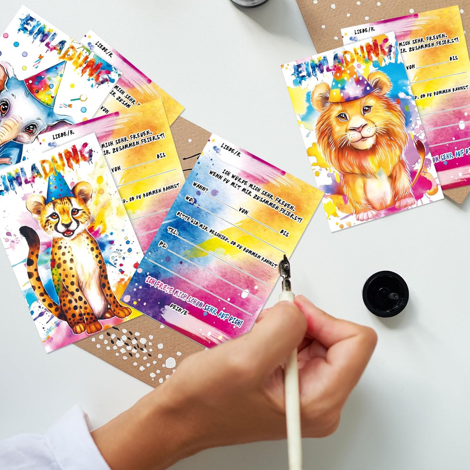 14 biglietti d'invito per la festa di compleanno dei bambini: la confezione contiene 14 biglietti d'invito, le dimensioni dei biglietti sono 15,5 x 10,5 cm, avrete abbastanza biglietti d'invito per fare una sorpresa alla festa di compleanno del vostro bambino Design graffiti acquerellato: abbiamo 7 stili: gorilla, elefantino, ippopotamo, riccio, alpaca, leone, ghepardo, carini e alla moda, colorati e unici, gli amici che riceveranno il biglietto d'invito lo ricorderanno sicuramente Carta di alta qualità: i nostri biglietti d'invito sono realizzati con carta ecologica accuratamente selezionata, con stampa nitida, bordi arrotondati che non graffiano le dita e una superficie liscia su cui è possibile scrivere senza difficoltà Facile da compilare: il biglietto d'invito per la festa di compleanno dei bambini con animali presenta un testo d'invito e campi liberi che possono essere compilati rapidamente con le informazioni necessarie. Con questo biglietto d'invito potrete esprimere i vostri sentimenti in modo rapido e preciso Ampia gamma di applicazioni: i biglietti d'invito per bambini possono essere utilizzati in modo versatile per feste di compleanno, feste a tema, feste in giardino e altre occasioni, si adattano alle esigenze di diverse occasioni e rendono la festa più attraente