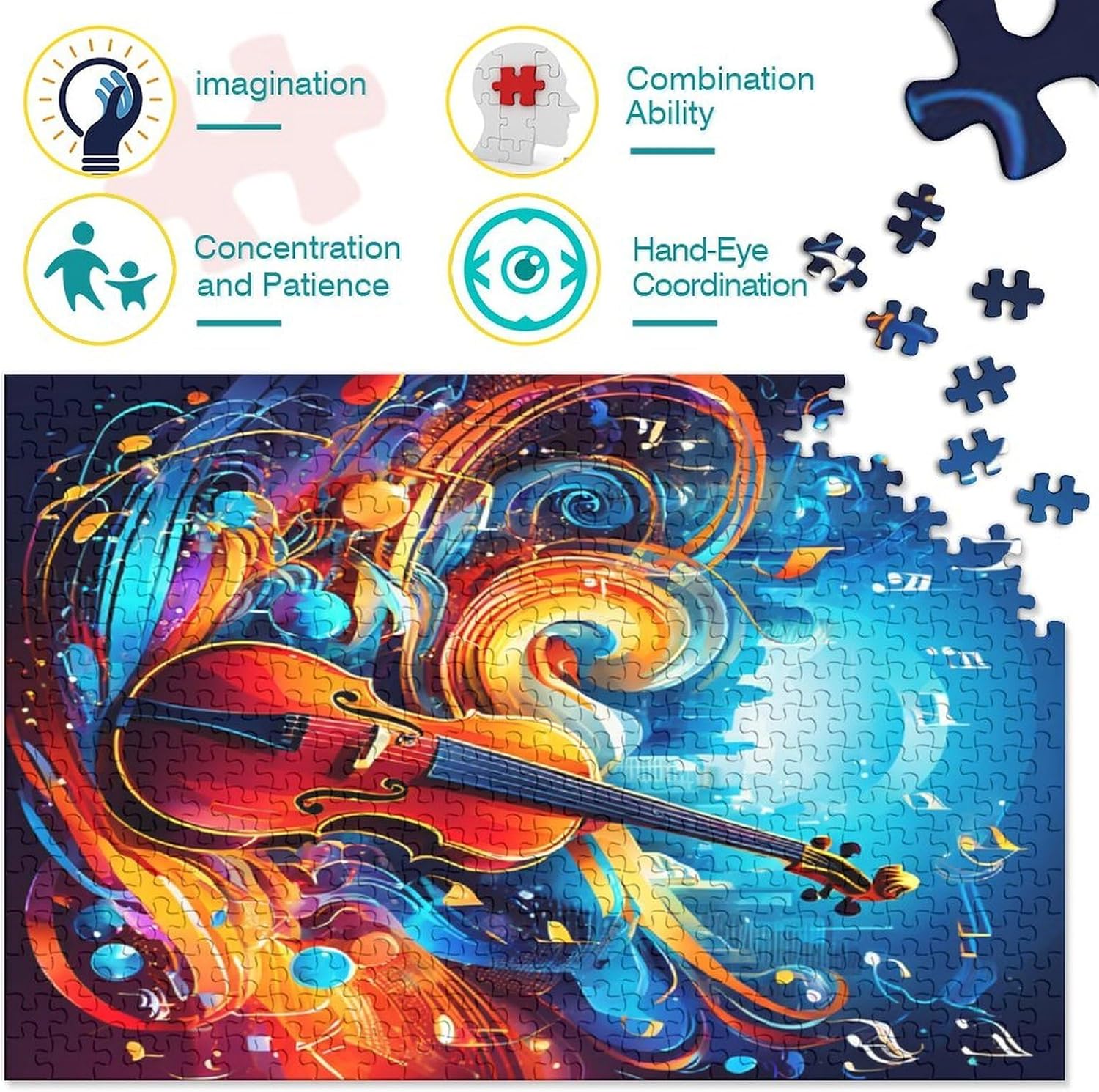 🌸GIOCHI PER ADULTI: una sfida emozionante da regalare a tutti li appassionati di puzzle e amanti dell'arte, ideale per uomo, donna o ragazzi; i puzzle aiutano a esercitare la memoria, migliorano la concentrazione e stimolano l'intuizione 🌸QUALITÀ PREMIUM: il massimo del divertimento con prodotti di altissima qualità in termini di materiali, motivi e design; realizzati in legno tagliati con fustelle fatte a mano, per un risultato impeccabile 🌸Buon regalo: il puzzle finito misura 70x50cm/1000pcs una volta completato. I migliori regali per ragazzi e ragazze dai 14 anni in su per compleanni o festività (Natale, Halloween, Ringraziamento, ecc.) 🌸Concediti una piacevole pausa relax! La nostra linea di puzzle da Violin Music 1000 pezzi è il regalo perfetto per chi ama ritagliarsi un momento di svago e di relax mettendo alla prova le proprie abilità logiche e di concentrazione 🌸I nostri Puzzle ti offrono un'ampia scelta d'immagini capace di soddisfare i gusti di tutti: grazie alla qualità dei materiali riciclati, la robustezza e resistenza dei singoli pezzi insieme alla brillantezza dei colori, ti garantiamo un risultato impeccabile e privo di riflessi