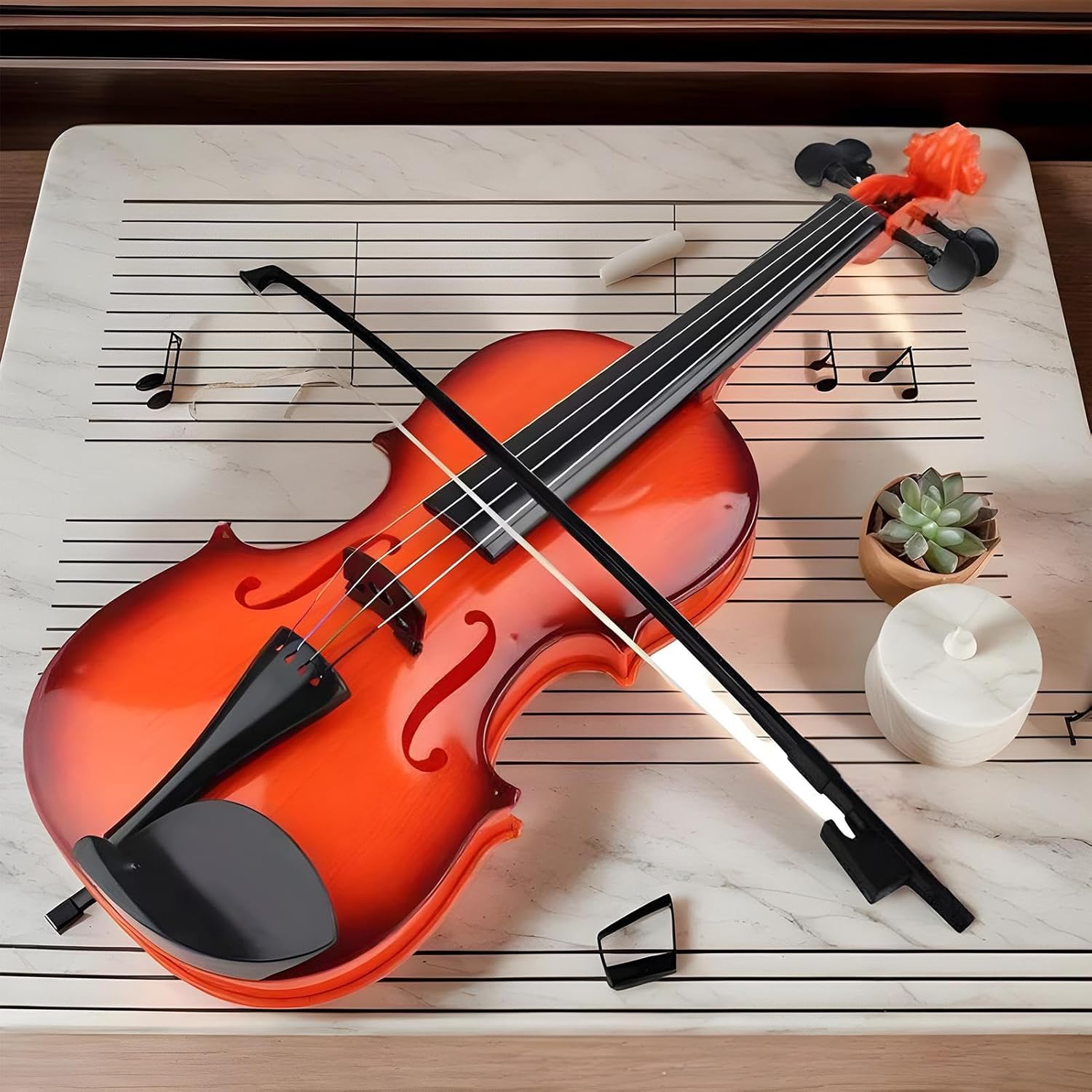 Materiale Resistente: Realizzato con una struttura ABS monopezzo, questo violino giocattolo assicura resistenza agli urti e alla pressione per una durata nel , offrendo superfici lisce e sicure ideali per il gioco dei bambini Utilizzo conveniente: Completo di archetto e colofonia per una configurazione pronta, la tensione delle corde regolabile soddisfa varie preferenze, ideale per la pratica in famiglia, con manutenzione senza attrezzi che semplifica notevolmente la gestione Suono Autentico: Offre un violinistico realistico mediante corde reali e d'archetto, supportato da una camera interna e piroli di precisione per un'accordatura facile e acustiche profonde e piacevoli Creatività musicale stimolata: Incoraggia i giovani apprendisti a esplorare la musica coltivando la creatività, migliorando competenze fondamentali come la coordinazione occhio-mano e la percezione del ritmo utilizzando il violino giocattolo Design Innovativo: Supporta la postura corretta con una forma ergonomica curva e un supporto spalla regolabile per maggiore stabilità in questo violino giocattolo