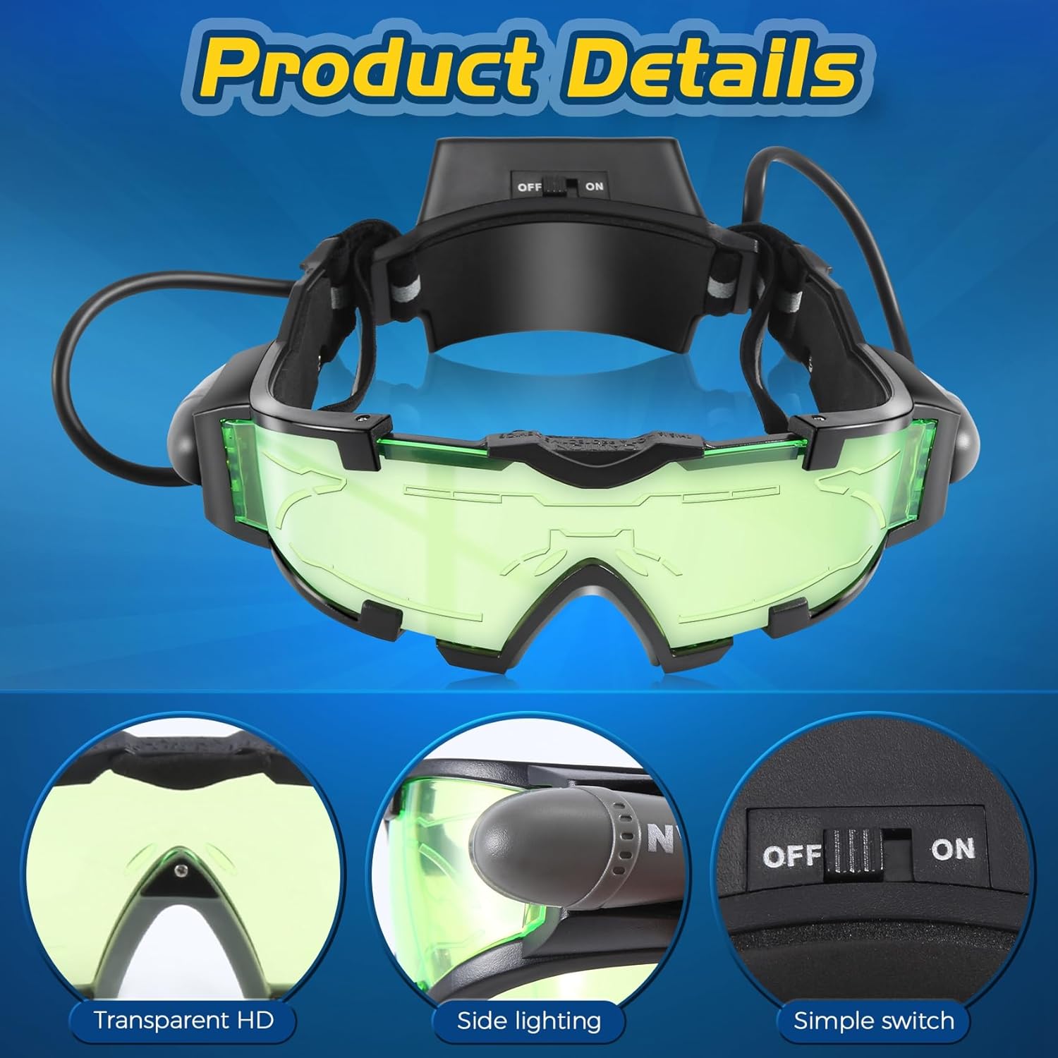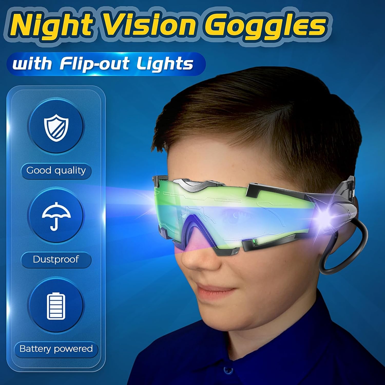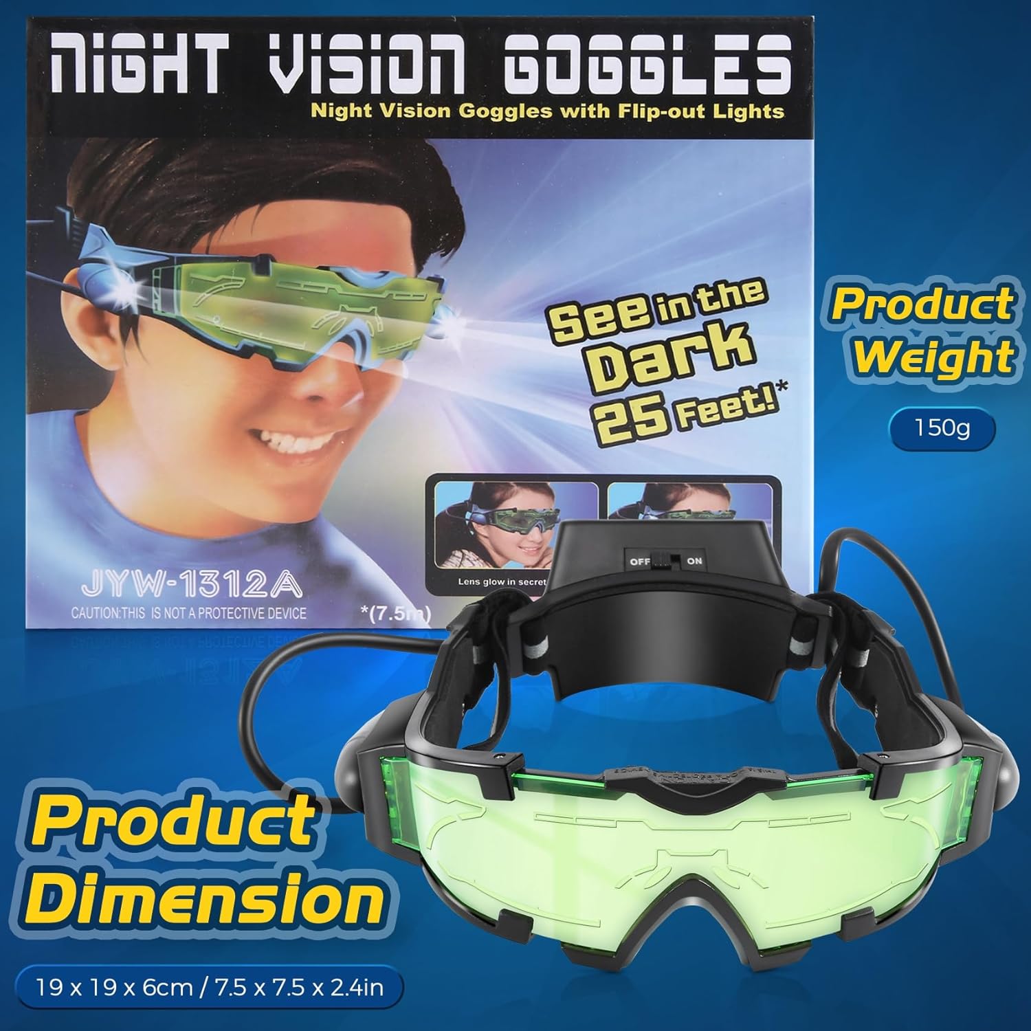 Uso: illuminazione in e antipolvere, antivento e anti timbro Materiale: PC; colore lente: verde; colore della luce: blu Alimentato da batteria AAA Peso del prodotto: 150 g Dimensioni del prodotto: 19 x 19 x 6 cm
