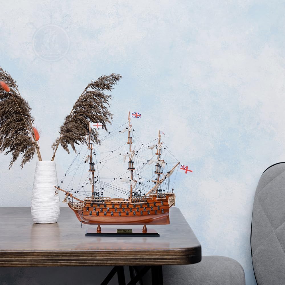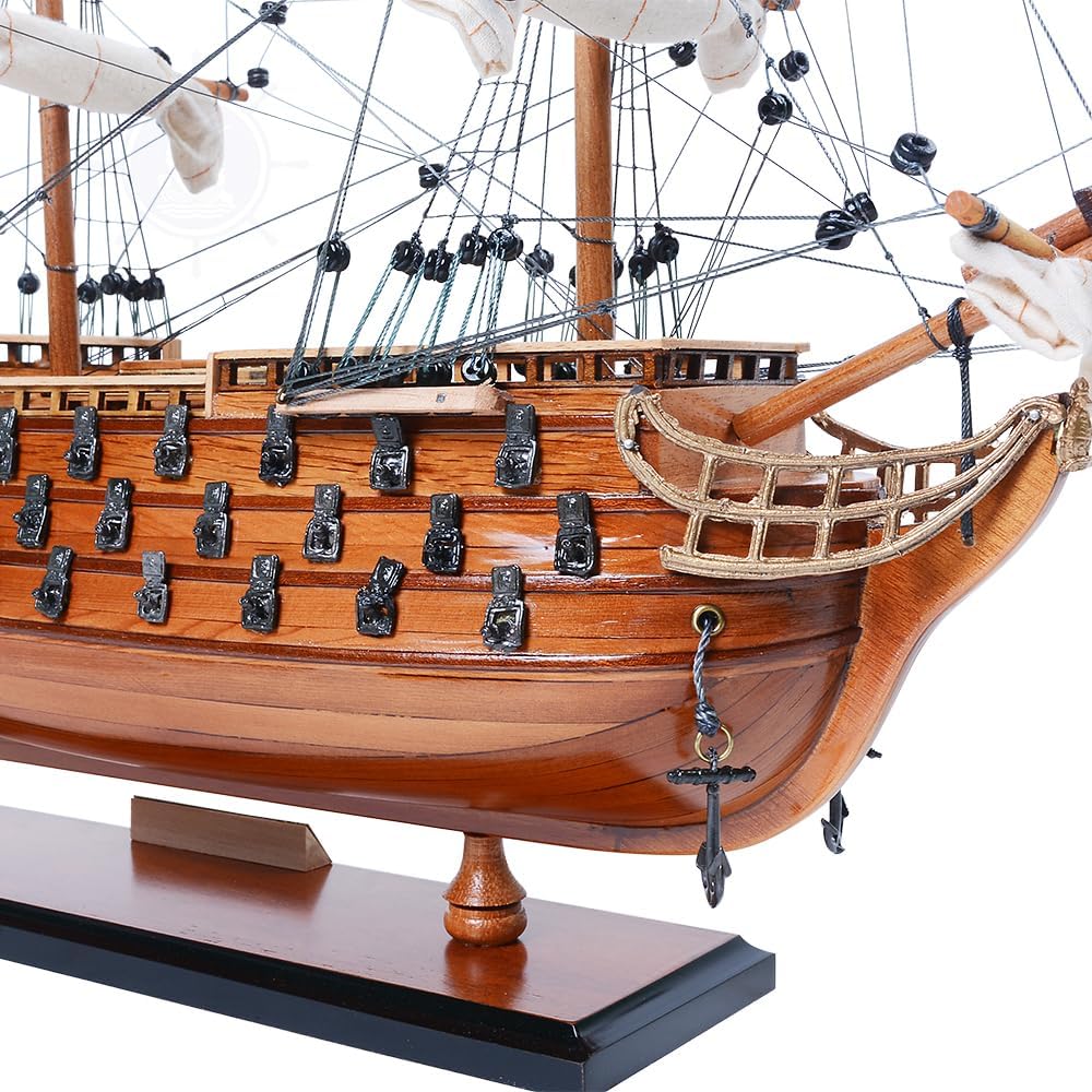 Il nostro modello è realizzato a mano dalla bella legno come in palissandro, manico in mogano, legno esotico teak, e con vari altri sulla nave, potrete Spot dettagli sorprendenti come: legno bompresso, foremast, mainmast, e mizzen Mast Il nostro modello è stato costruito secondo la scala tramite piani originali, foto e disegni