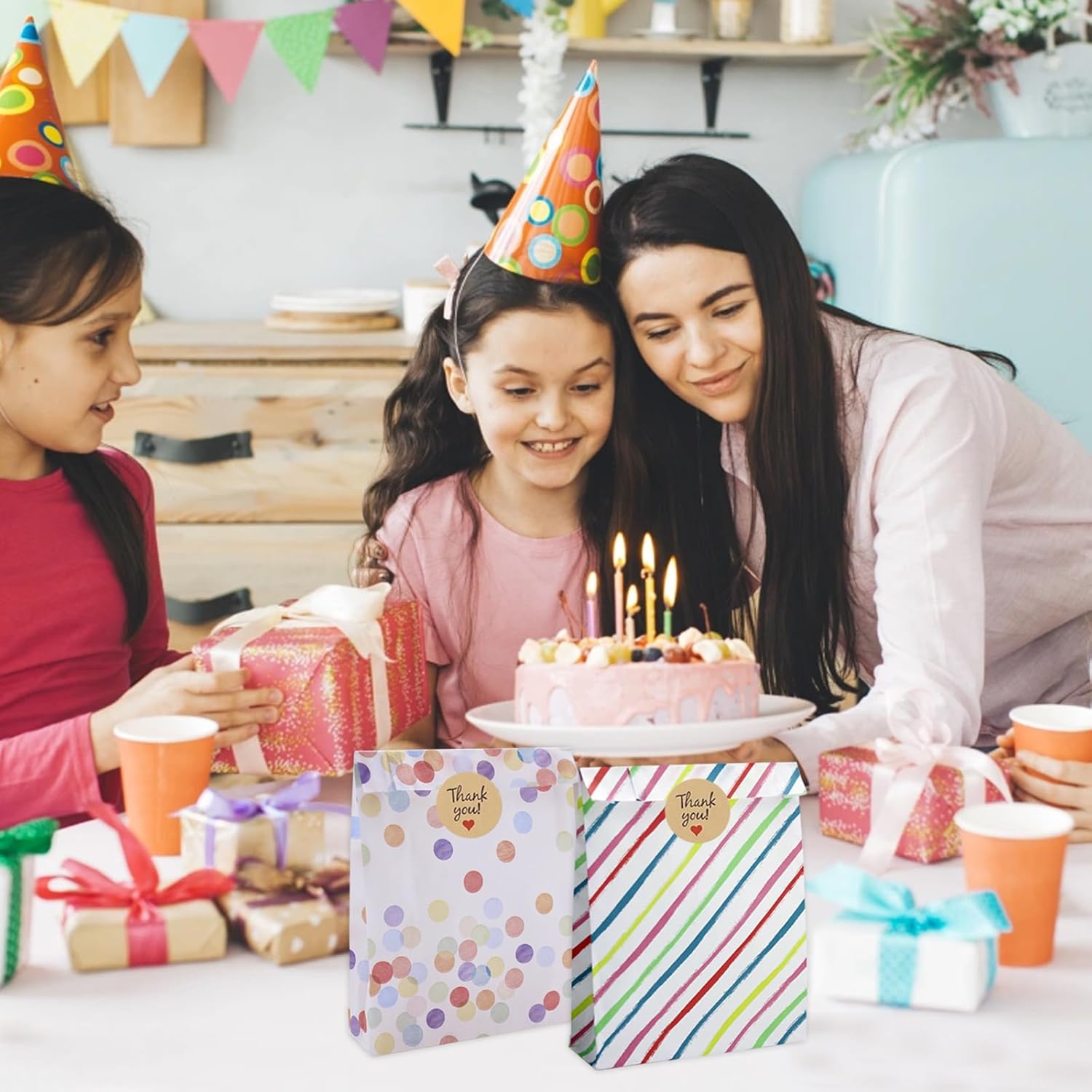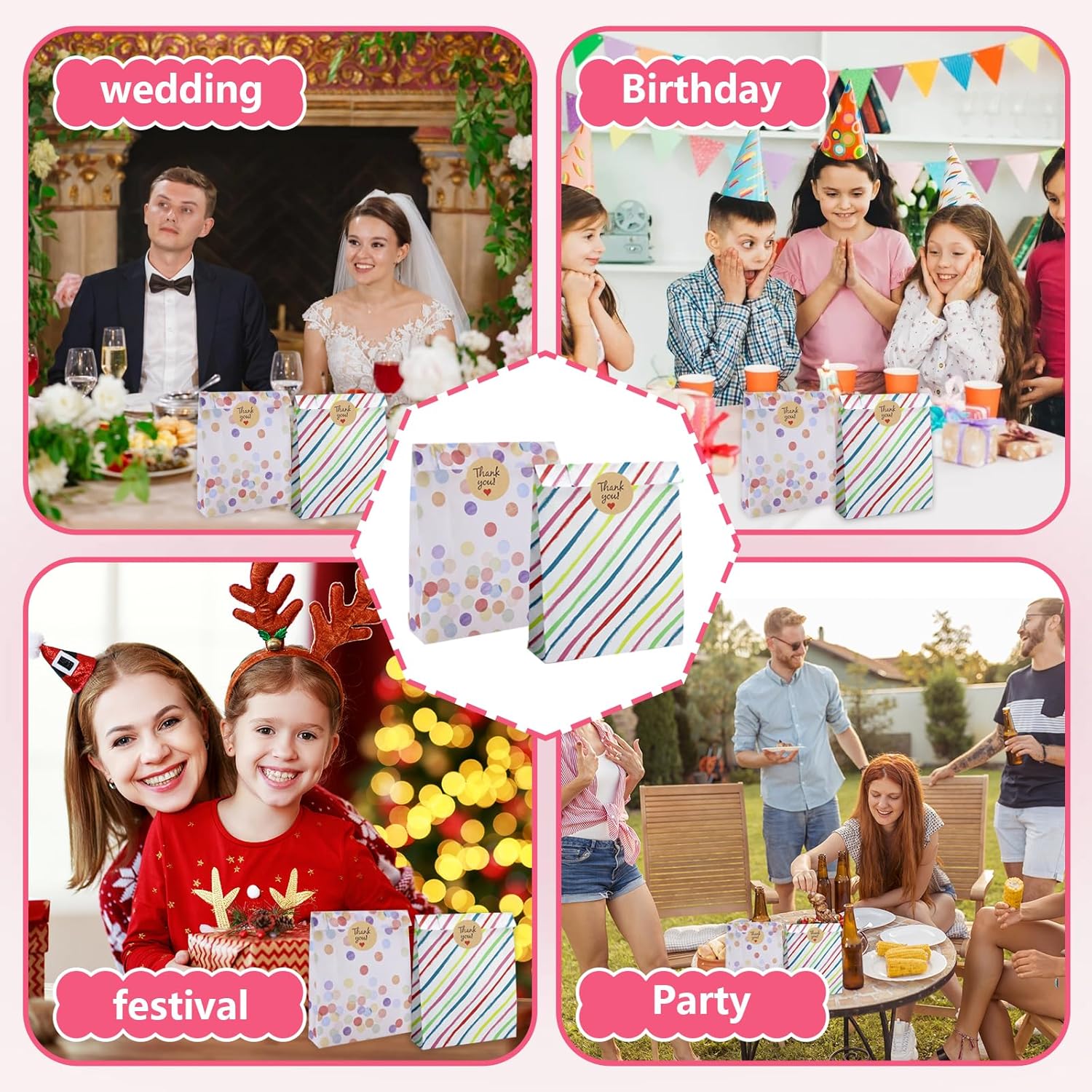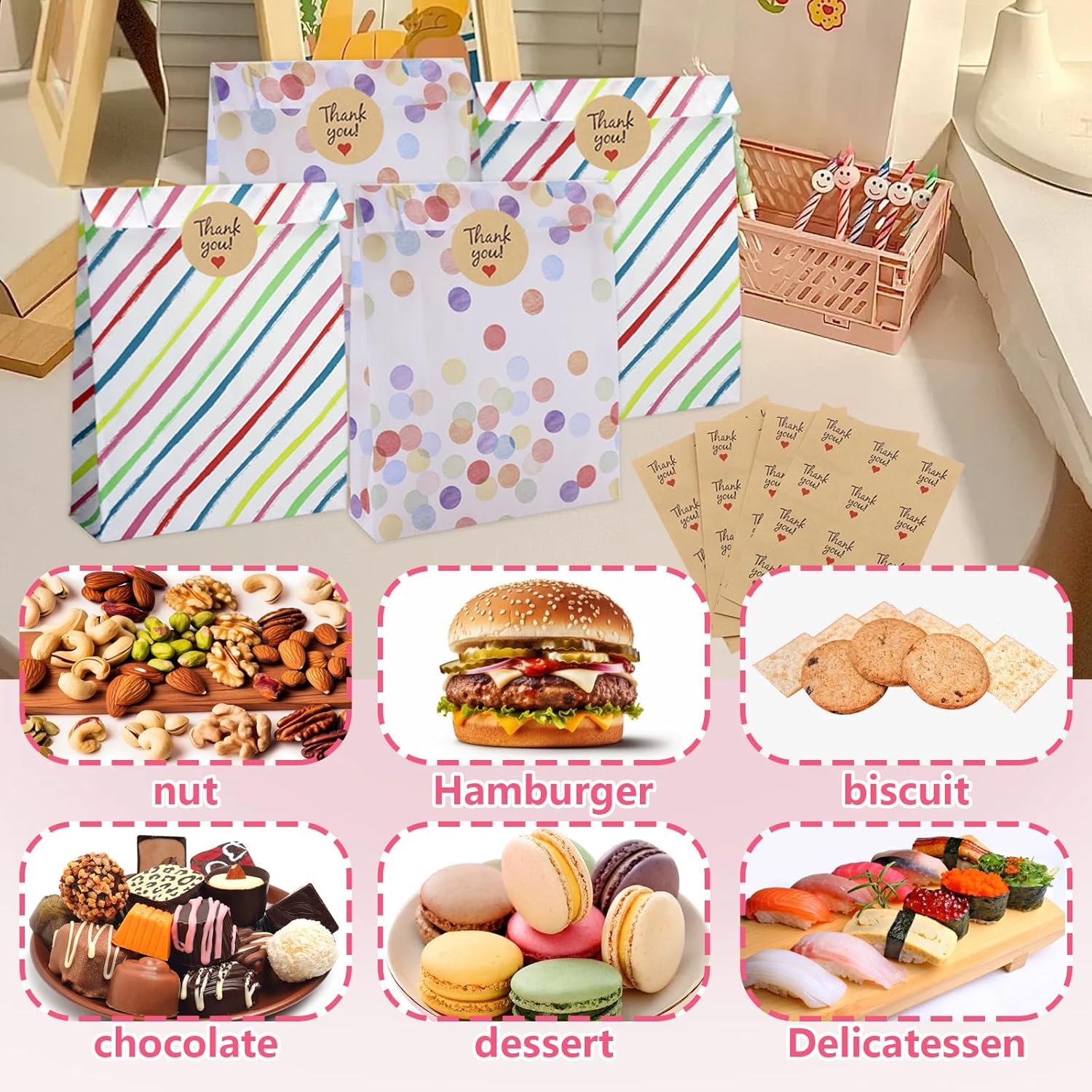 【Può contenere tutti i tipi di oggetti】Questi sacchetti regalo colorati per feste sono perfetti per conservare tutti i tipi di piccoli oggetti come caramelle, cioccolatini, biscotti, giocattoli, ecc. Regali intimi per amici e amanti in occasione di feste di compleanno, baby shower, matrimoni e altre celebrazioni. Quando non in uso, può essere piegato e compresso per riporlo facilmente. 【Design unico】 I sacchetti regalo sono progettati con tagli colorati e motivi a punti per aggiungere un tocco unico ai tuoi regali, assicurando che si distinguano e lascino un'impressione duratura. Il design intelligente del fondo pieghevole consente a queste borse di essere in posizione verticale e facili da trasportare.,Confezione da 40: il set comprende 40 sacchetti per bomboniere con sacchetti per bomboniere e 48 adesivi sigillanti per sigillare e fissare facilmente gli oggetti. Ideale per contenere un'ampia gamma di formati più piccoli