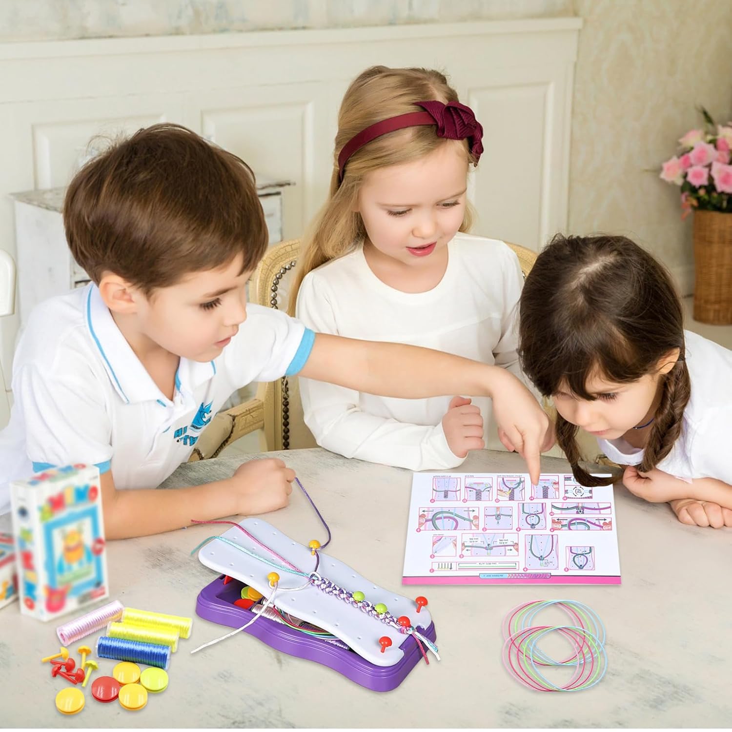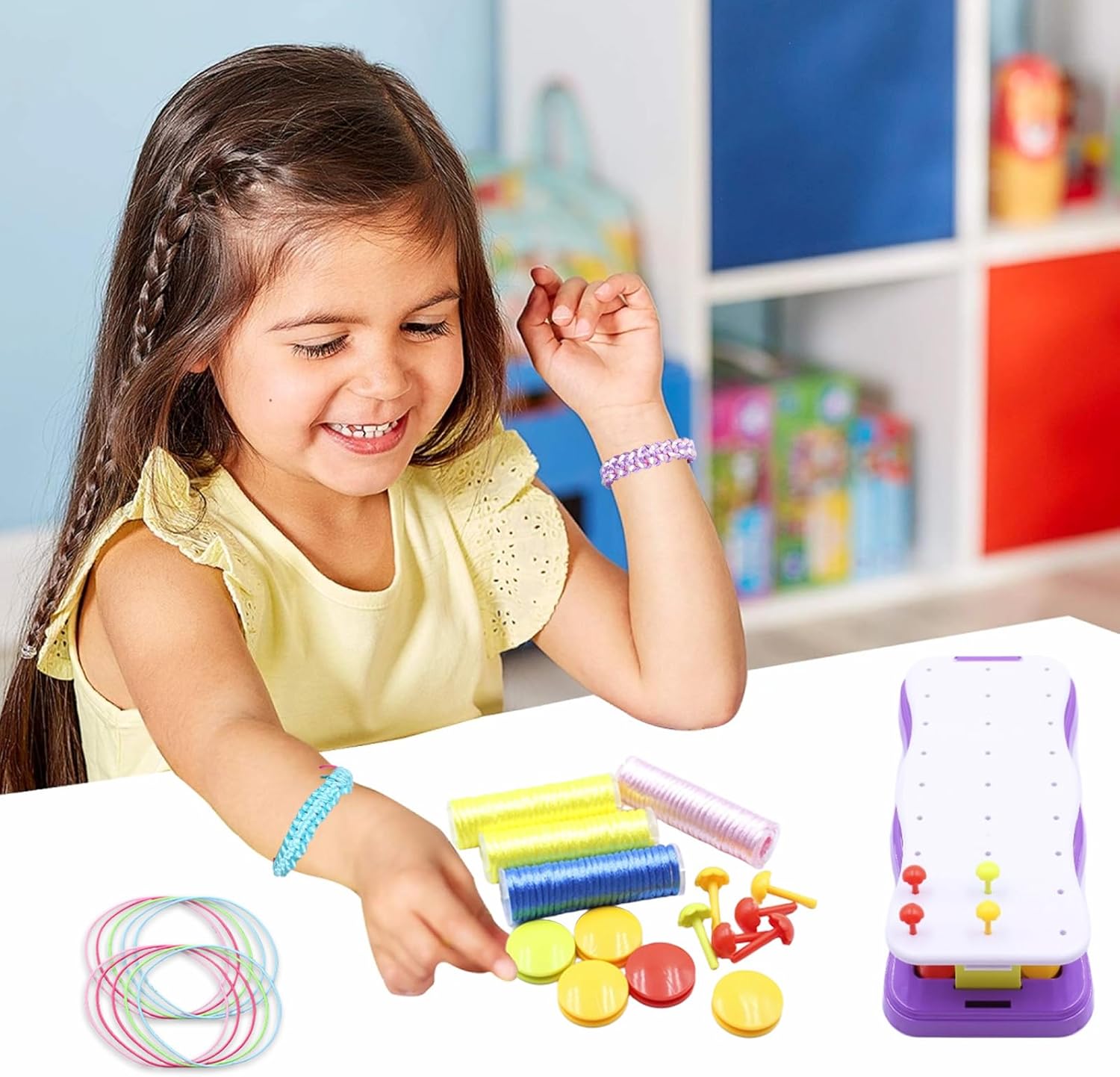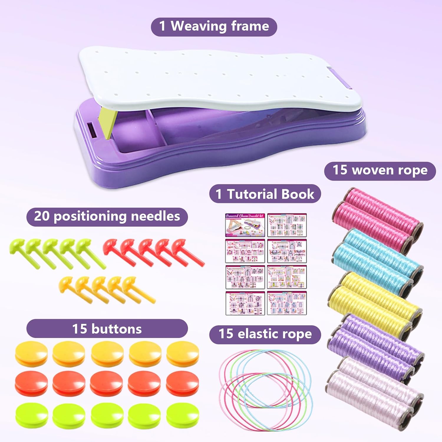 Set viola di lusso: con 1 supporto per tessitura + 20 punti di posizione + 15 pulsanti + 15 corde elastiche + 15 corde per tessitura + 1 tutorial, per principianti e avanzati di età superiore a 7 anni Creatività sociale stimolata: braccialetti di scambio di amicizia: popolare nel campus; Attività genitoriali: collaborazione in tutta la famiglia per sviluppare lo spirito di squadra; Attività inclusive per asili e centri di riabilitazione Progettazione "Open and Play": senza strumenti! Corda di fissaggio a fissaggio - senza incollaggio, zero disordine. Sistema anti-avvolgimento: classificazione automatica del filo a segmentazione nascosta Divertente: esercizio di movimenti delicati: tecniche di tessitura per la formazione della precisione delle mani, il partito studentesco è necessario! Integrazione nell'educazione STEAM: leggi della matematica (conteggio, simmetria) + pratica della teoria del colore Adattarsi allo scenario di guarigione: alleviare i movimenti ripetuti per aiutare i bambini con ADHD / autismo - certificato da un terapeuta occupazionale