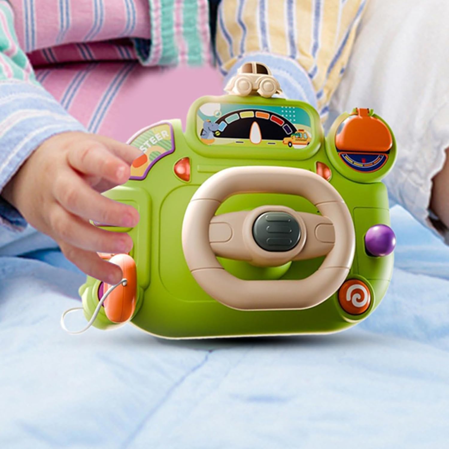 Robustezza Ottimale: La costruzione in materiale ABS rende questo giocattolo volante indeformabile anche dopo utilizzo intensivo, mantenendo integrità strutturale per anni di divertimento Operazione Semplice: Diverse opzioni di effetti sonori abbinati a luci realistiche migliorano l'atmosfera di guida, incoraggiando lo sviluppo sensoriale con comandi intuitivi per un uso senza sforzo durante le attività interattive per i più piccoli Regalo Premuroso: Mostra il tuo affetto con questo premuroso regalo per bambini, progettato per migliorare lo sviluppo cognitivo e semplificare l'apprendimento e direzioni sinistra e destra per i piccoli Sviluppo Cognitivo: La relazione tra la rotazione del volante e lo spostamento 'auto aiuta i più piccoli a identificare le direzioni fondamentali, trasformando il gioco in un momento di crescita coinvolgente e piacevole. Efficienza Avanzata: Giocattolo volante passa in modalità riposo dopo 10 minuti, offrendo efficienza energetica e interattività tramite avvisi audio delicati e illuminazione soffusa durante le pause.