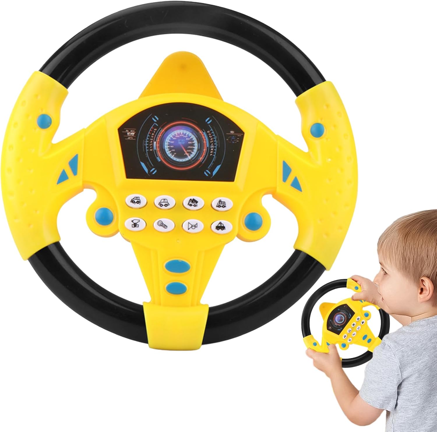 Progettato per la sicurezza di guida: questo volante per bambini ad alta mimulazione è per mantenere i bambini impegnati alle corse in auto. Lascia che imiti l'autista e aumentano il piacere di guida Musica e funzione sonora interessanti: questo volante per bambini fornisce un forte senso di ritmo e vari effetti sonori come freni, motori antincendio, ambulanze e motori che aiutano a sviluppare udito, musicalità e discernimento attraverso molteplici effetti. I bambini godranno di un di gioco pieno di divertimento mentre costruiscono le loro capacità cognitive Facile accesso all'installazione: può essere adsorbito su superfici lisce, dotate di Vëntosa come auto giocattolo, pavimento, tavolo, sedile, ecc.; Facile da installare, fornendo più divertimento e coinvolgimento Toying di apprendimento interessante: incoraggia la crescita e lo sviluppo di tuo figlio con questo volante per bambini. Migliora la capacità 'udito e stimola l'educazione precoce, rendendolo strumento eccellente per pensare all'esercizio fisico e all'esercizio fisico Volante per bambini: il modello del volante per bambini mantiene il tuo bambino impegnato e impedisce ai genitori di distrarre che guidano, garantendo viaggi su strada più sicuri