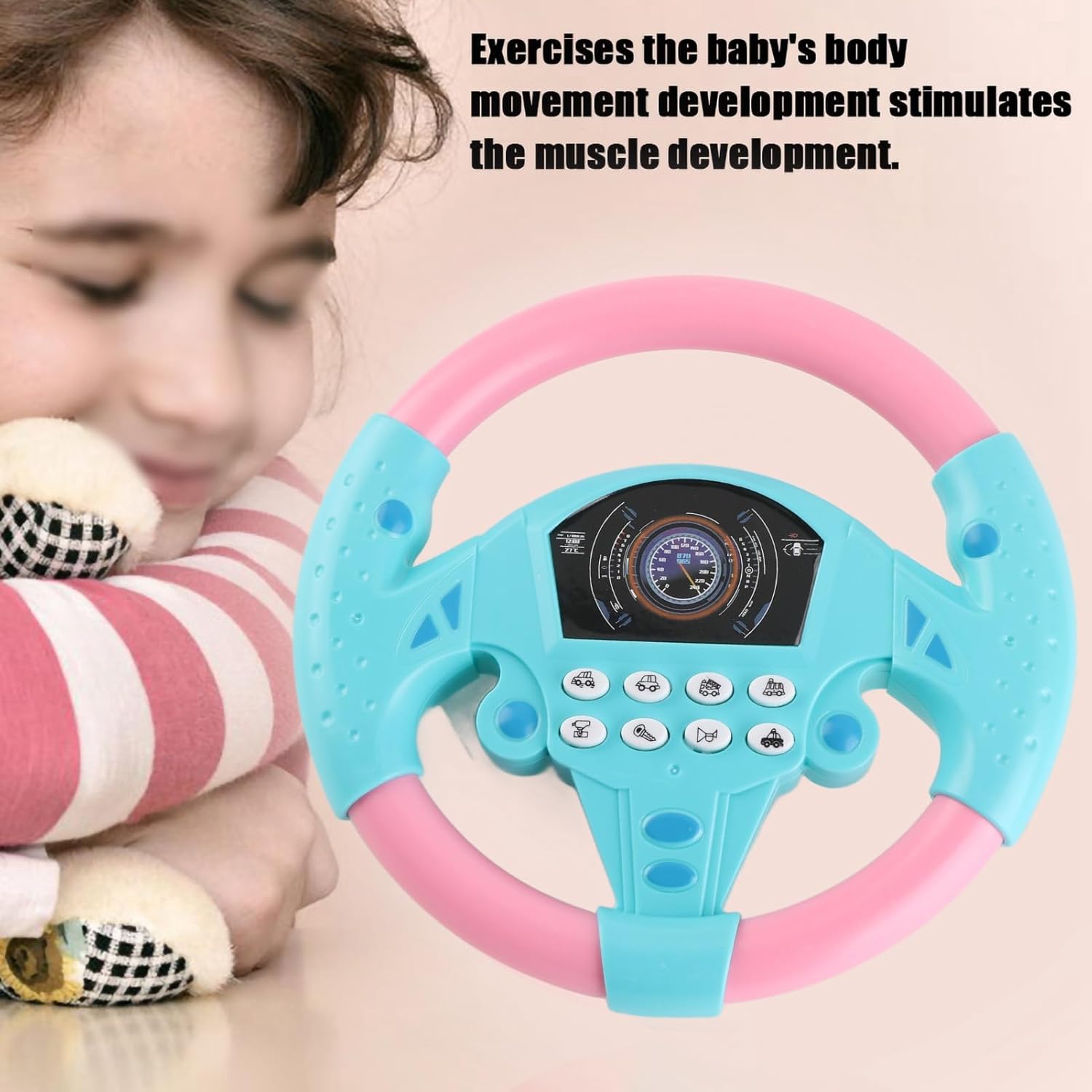 VENTOSA PER GIOCO SU PIÙ SUPERFICI: dotato di una robusta base a ventosa che può essere fissata saldamente a superfici lisce come tavoli, seggioloni o seggiolini per auto, consentendo un gioco di guida fantasioso ovunque. SUONI E MUSICA COINVOLGENTI: presenta divertenti effetti sonori per auto e musica dinamica per catturare l'attenzione di tuo figlio. Questi elementi uditivi possono aiutare a sostenere lo sviluppo dell'udito e introdurre un senso del ritmo durante il gioco. INCORAGGIA IL GIOCO ATTIVO E IMMAGINATIVO: questo giocattolo interattivo consente ai bambini di imitare la guida, promuovendo il gioco di ruolo e la narrazione.Tali attività possono supportare lo sviluppo della creatività e delle capacità motorie. FACILE INSTALLAZIONE E PORTATILE: Progettato per comodità, il volante si installa facilmente con la ventosa ed è alimentato da 2 batterie AA (non incluse), rendendolo un ottimo compagno di viaggio per le gite. MATERIALE E DESIGN SICURI PER I BAMBINI: Realizzato in plastica resistente e adatta ai bambini con un design dai bordi arrotondati, questo volante è costruito per un uso sicuro e duraturo durante le sessioni di gioco attive.
