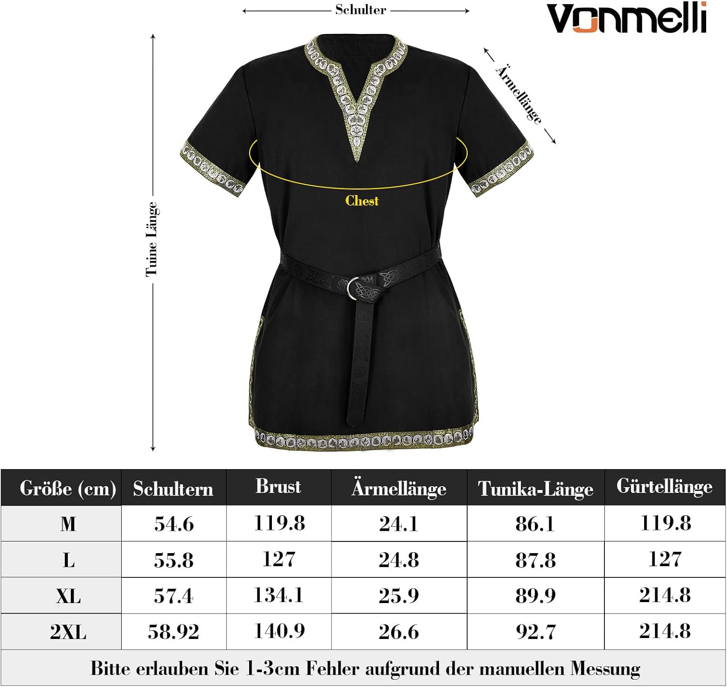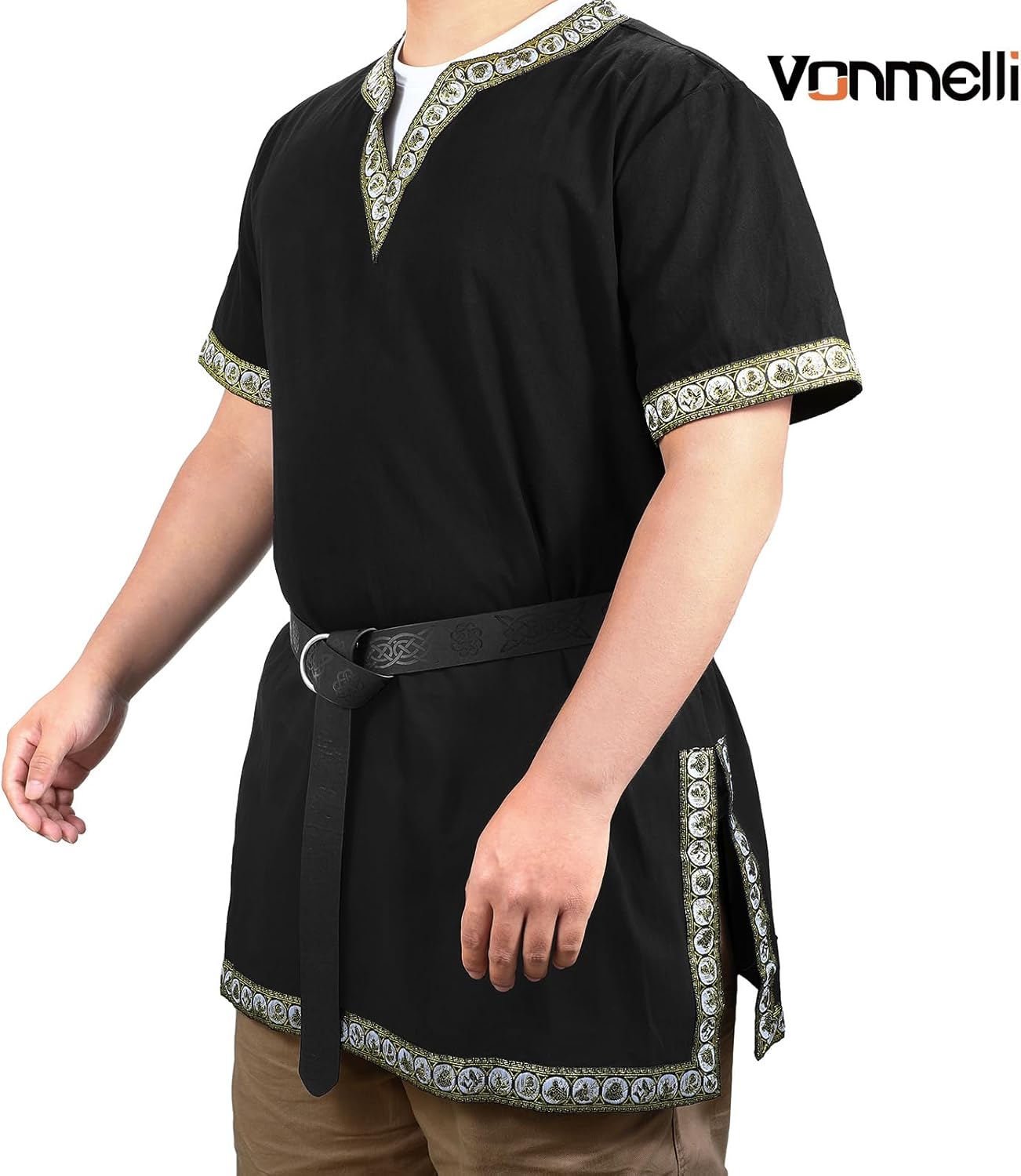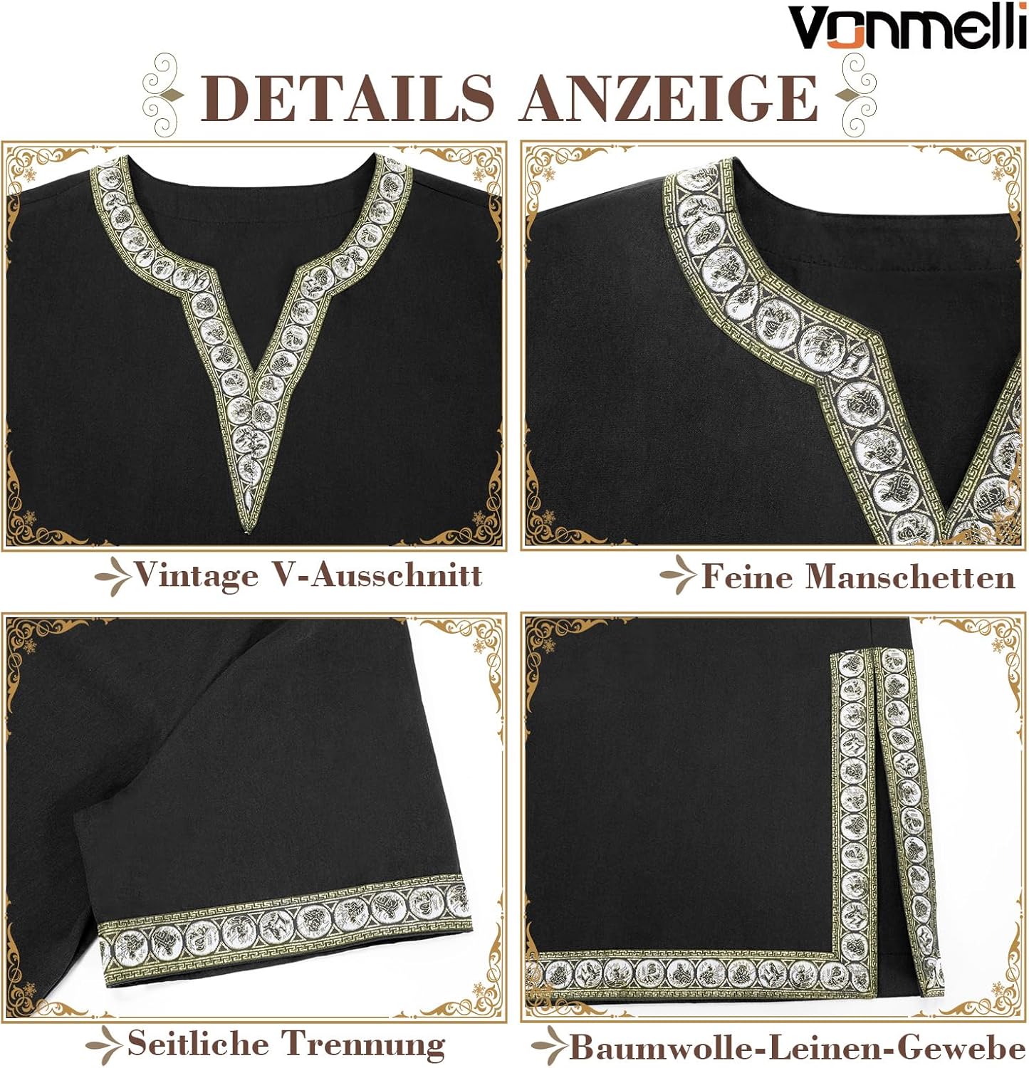 VONMELLI Costume medievale da uomo, camicie rinascimentali, vintage, tunica vichinga, cavaliere, pirata, Halloween, cosplay, è ben fatto da tessuti di cotone e lino di qualità. Un bellissimo costume per cosplay.