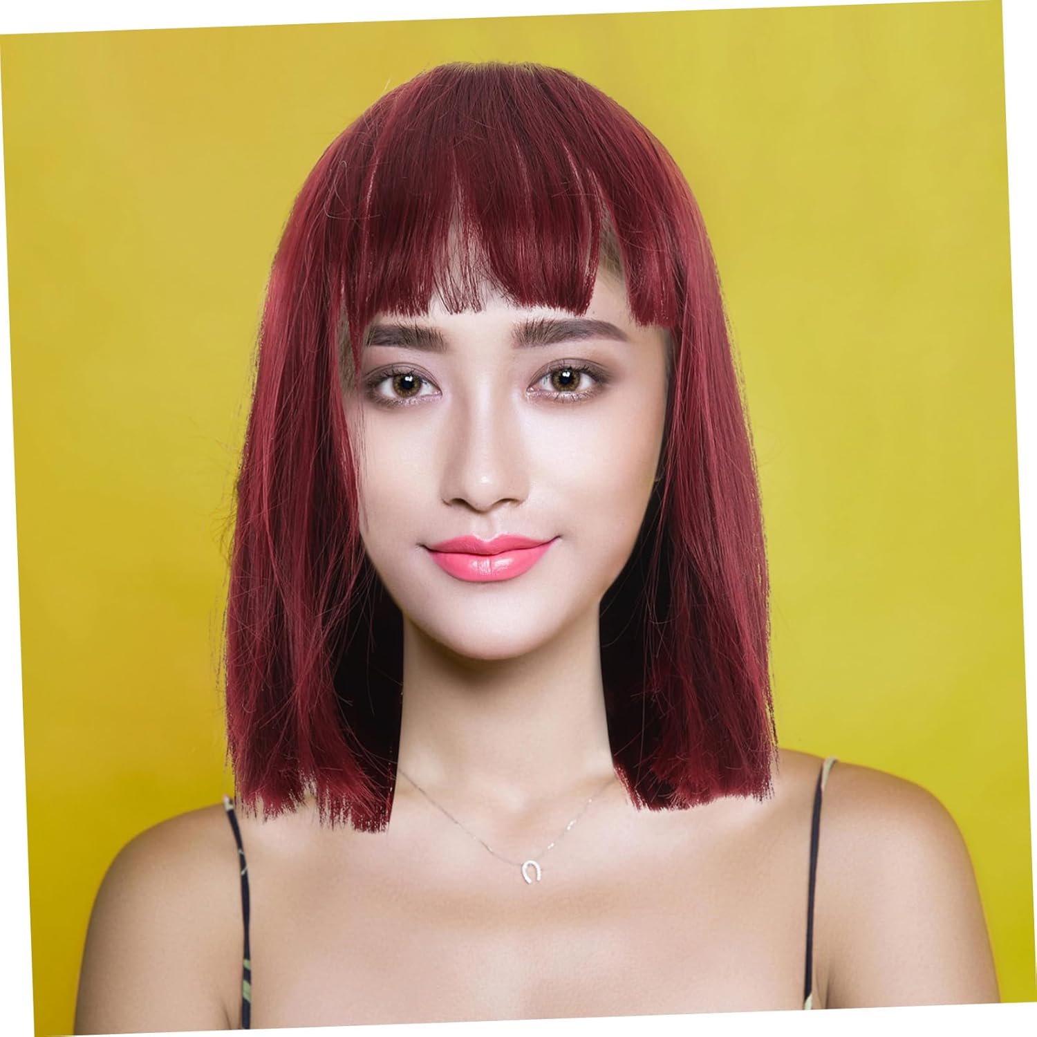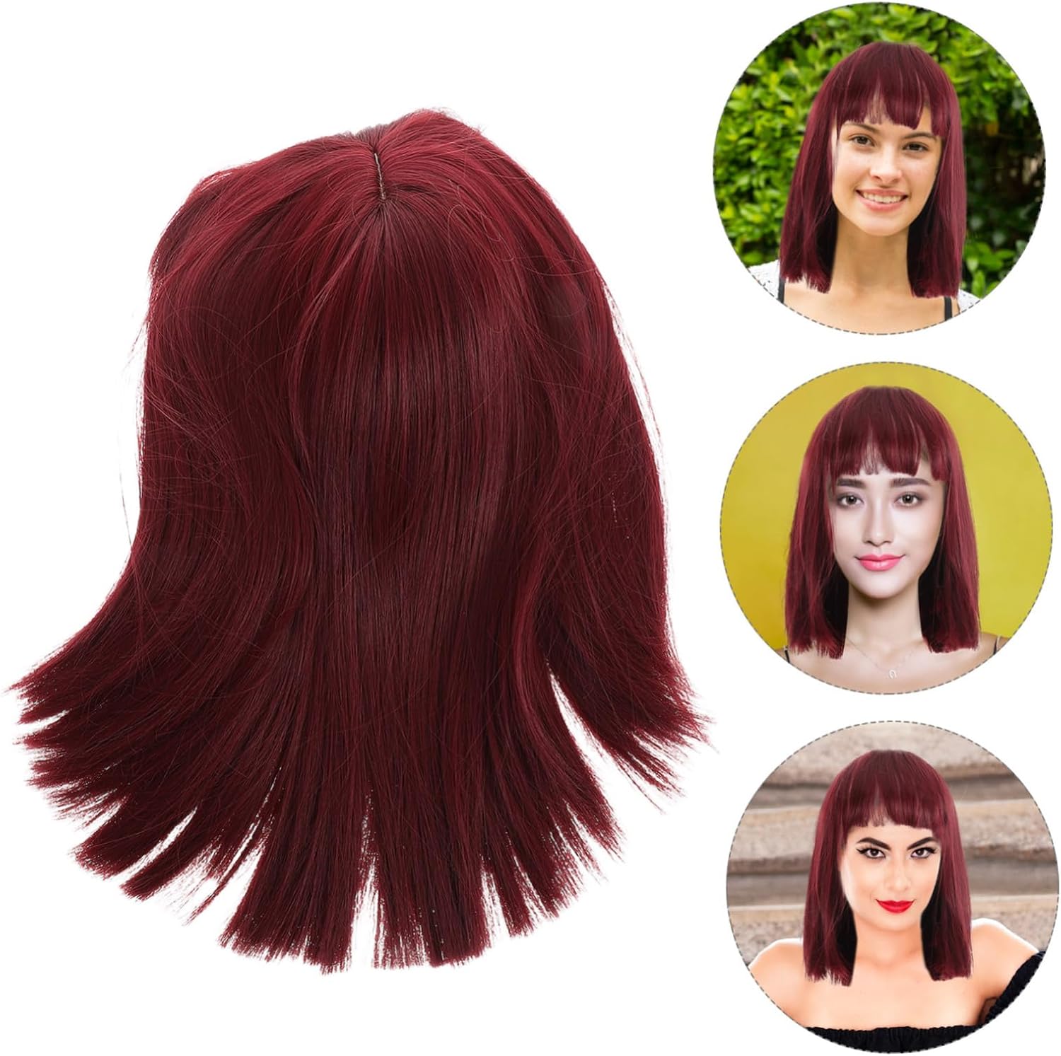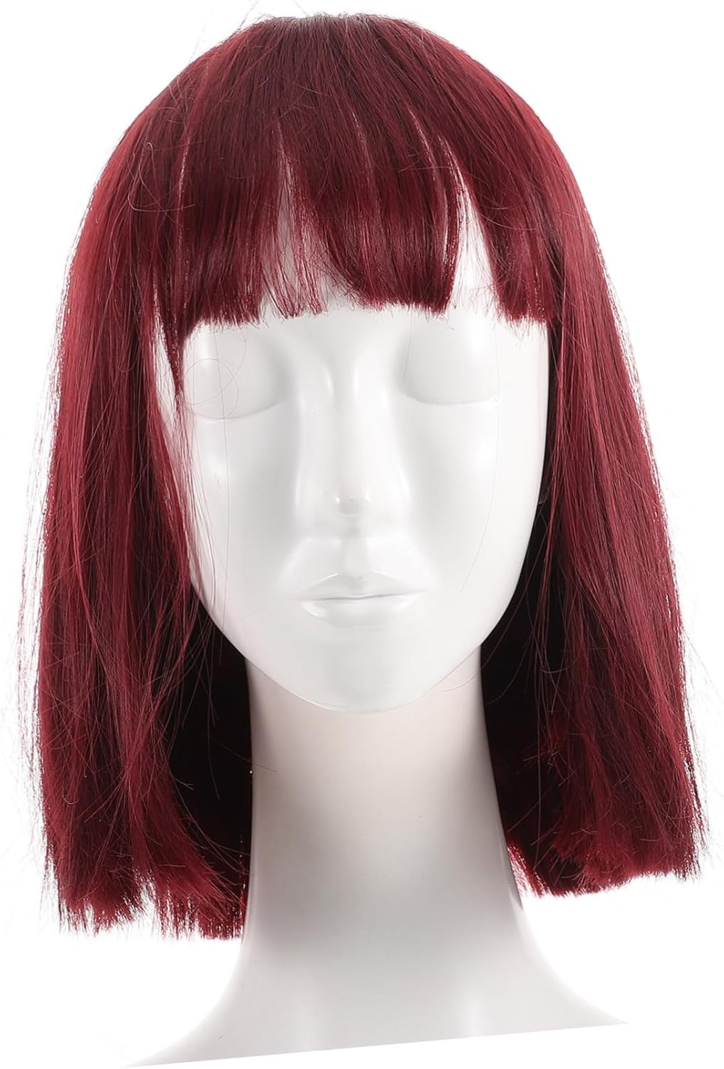 Parrucche da donna realistiche: realizzate per imitare i naturali, questa parrucca offre un alto livello di realismo, assicurandoti un aspetto decente in ogni momento Adatta per il cosplay: progettata per gli appassionati di cosplay, questa parrucca ti aiuta a facilmente il look del personaggio appropriato Parrucche corte eleganti: il taglio corto alle spalle è alla moda che pratico, rendendolo un'ottima scelta per l'uso quotidiano Frangia carina: con la frangia, questa parrucca migliora il tuo look con un tocco di dolcezza e fascino Colore alla moda: la tonalità rosso vino è un colore alla moda e accattivante che completa vari e stili