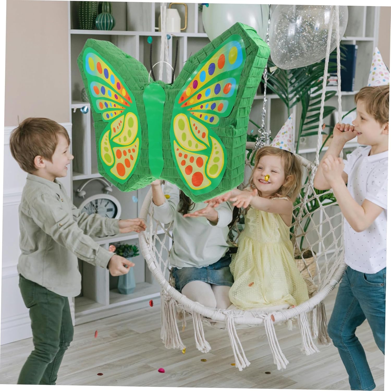 Pignatta a farfalla appesa: molto adatta per giocare a feste, feste di compleanno e festival o celebrazioni, pignatta da festival Contenitore per caramelle: presenta un delizioso design a forma di farfalla, unico e creativo, che attirerà notevolmente l'attenzione delle persone, decorazioni sospese Ornamento di compleanno - fatto di carta, l'oggetto di pinata a farfalla è sicuro e riutilizzabile da usare, ti regala un'esperienza piacevole, decorazione di pinata per feste Pinata di carta di compleanno: può essere riempita con piccole caramelle e altre sorprese per aumentare l'interesse, aggiungere atmosfera alla festa e impressionare gli ospiti, pignatta di compleanno Pinata per feste: il design dall'aspetto divertente renderà la tua festa più divertente e interessante, supporto fotografico