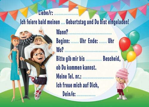 VSW, 12 biglietti d'invito e 12 buste per feste di compleanno e minion di compleanno per bambini, n. 84