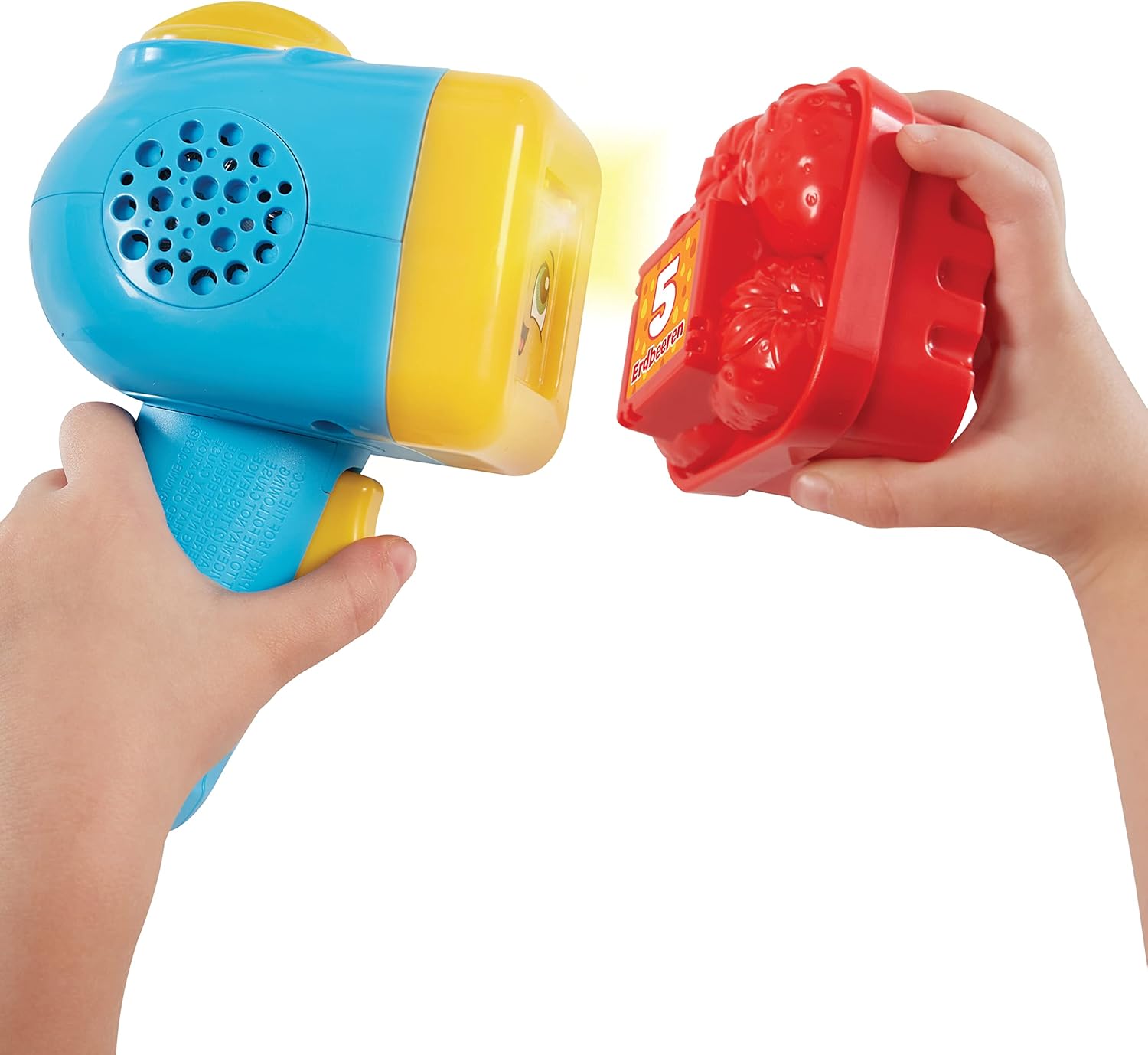 Versione tedesca Cestino della spesa interattivo 2 in 1 da spingere e trasportare con scanner che rileva gli 8 alimenti contenuti 8 alimenti di diversi colori e in diversi numeri che lo scanner luminoso riconosce; il tipo, il colore e il numero degli alimenti sono nominati Si trasforma in un attimo da cestino da trasporto a cestino da spingere Età: da 2 a 5 anni
