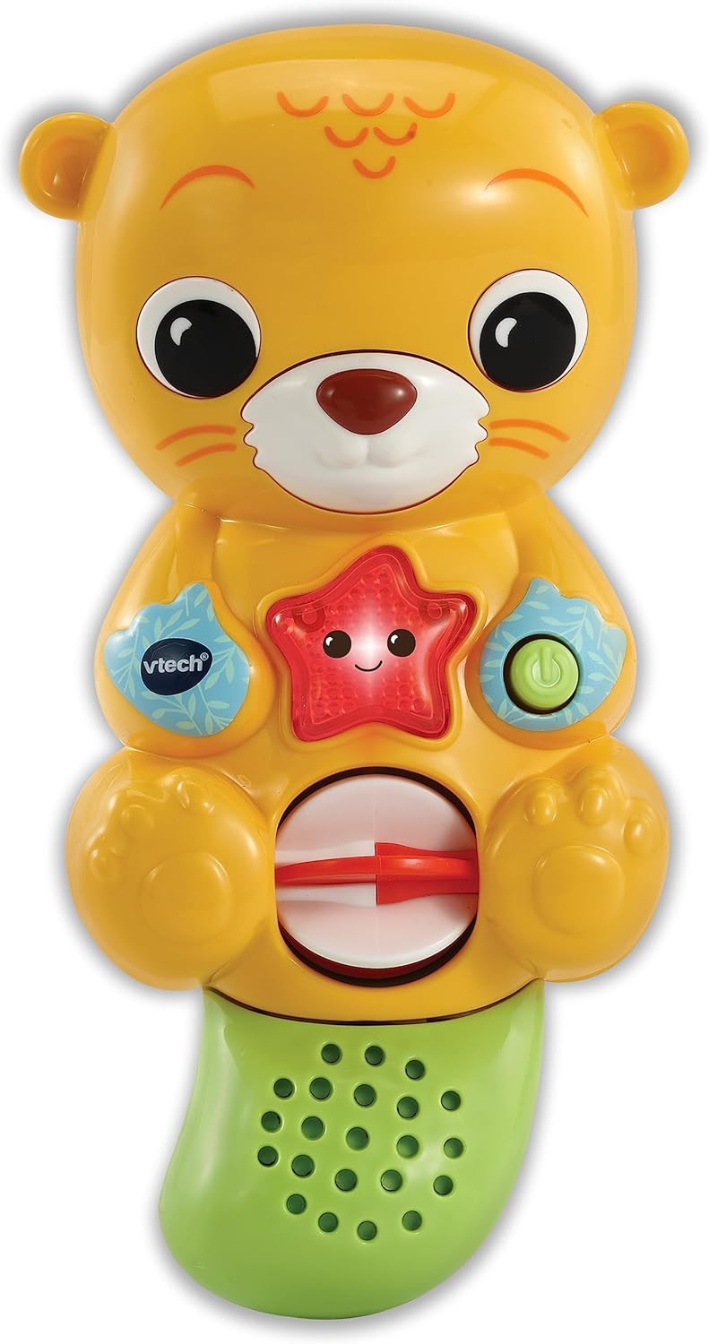 Spielzeug, das Laute von sich gibt, ist vor allem bei Kindern zwischen einem und drei Jahren sehr beliebt, weshalb sich dieser Badespaß Otter für diese Altersklasse wahrscheinlich am besten eignet. Wie man es von Produkten von Vtech kennt, wird der Badeotter in einer farbenfrohen Kartonverpackung geliefert, in welcher man das Spielzeug direkt ausprobieren kann, ohne es sofort auspacken zu müssen. Meiner Meinung nach eignet sich diese farbenfrohe und doch schlichte Verpackung auch wunderbar zum Verschenken. Weder der Badeotter noch die drei mitgelieferten Förmchen verströmen einen unangenehmen Geruch, was ich als gutes Zeichen dafür sehe, dass bei der Produktion nicht das allerbilligste Material verwendet wurde. Auch über die Verarbeitung der einzelnen Teile kann ich nicht meckern, denn ich habe keinerlei Verarbeitungs- oder Materialfehler entdecken können. Die einzelnen Farben sind sehr strahlend und laden förmlich schon zum Spielen ein. Sowohl der Badeotter als auch die Förmchen bestehen aus Kunststoff und zeichnen sich daher durch ein leichtes Eigengewicht aus, weshalb sie sich sehr gut für kleine Kinder eignen, können sie doch selbstständig mit ihrem Spielzeug in der Wanne hantieren. Auf der Unterseite der unterschiedlich großen Fischförmchen befinden sich kleine Löcher, durch welche die Kleinen Wasser gleiten lassen können. Schon dies bereitet Kindern erfahrungsgemäß große Freude, doch das Besondere an diesem Set ist natürlich der Badeotter, der einen fröhlich anstarrt und auf dem Badewasser schwimmen kann. Auf dessen Bauch befindet sich ein kleines Rädchen, welches dich dreht, sobald man Wasser auf dieses gießt. Drückt man den grünen Anschalter, begrüßt er das Kind, stellt sich vor und beginnt zu singen beziehungsweise zu sprechen. Weitere Gespräche oder Klänge hört man, wenn man auf den Stern drückt, welcher sich ebenso auf dem Bauch des Otters befindet. Dieser leuchtet beim Drücken rot auf und blinkt. Die Stimme des Otters ist wie bei der Mehrheit der Kinderspielzeuge eher gewöhnungsbedürftig, doch da die Lautstärke nicht zu hoch ist, für Eltern durchaus erträglich. Die Klänge und Gespräche des Otters sind klar und deutlich zu hören. Insgesamt fördert dieser Badespaß Otter nicht nur die Freude am Baden, sondern auch die Hörkompetenz der Kinder. Sie können die Lieder außerdem schon bald mitsingen und erkunden, welche Wirkung Wasser haben kann, indem sie zum Beispiel das Rädchen drehen lassen. In diesem Sinne finde ich, dass dieses Set rundum gelungen und sehr kindergerecht ist, weshalb der aktuelle Preis von ca. 20 Euro durchaus gerechtfertigt ist. Ich kann diesen Otter für Kinder zwischen 1 und 3 Jahren weiterempfehlen.