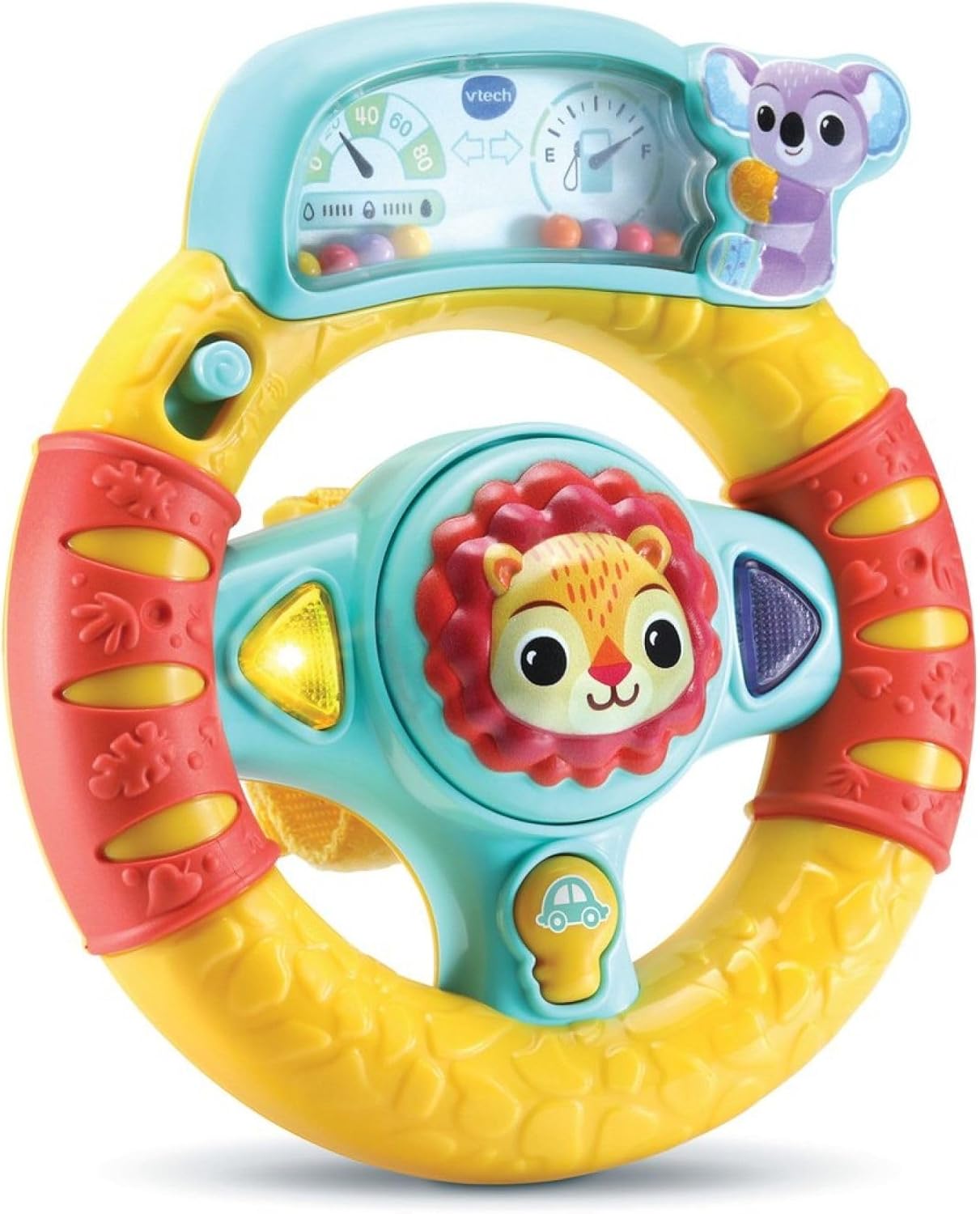 Versione francese Volante musicale e luminoso consigliato per bambini da 6 mesi a 3 anni Più di 45 canzoni, melodie, suoni e frasi. Tanti elementi da gestire: pulsante chiave d'accensione, pulsante clacson, spie Il bambino attiva melodie e canzoncine girando il volante Chiusure in velcro posteriori per giocare a terra o nel passeggino