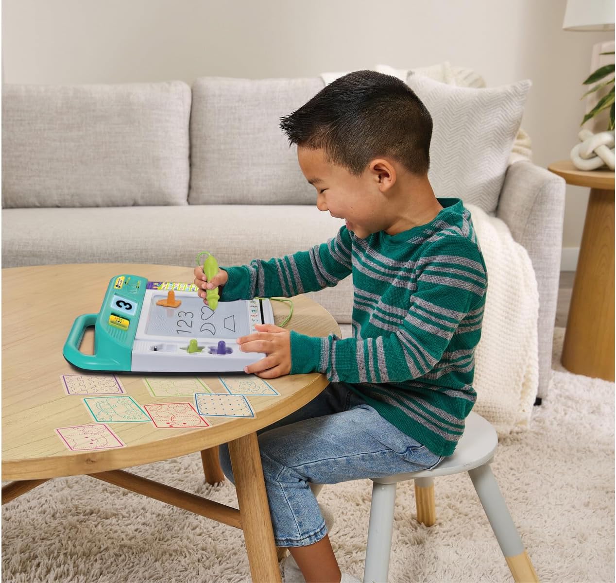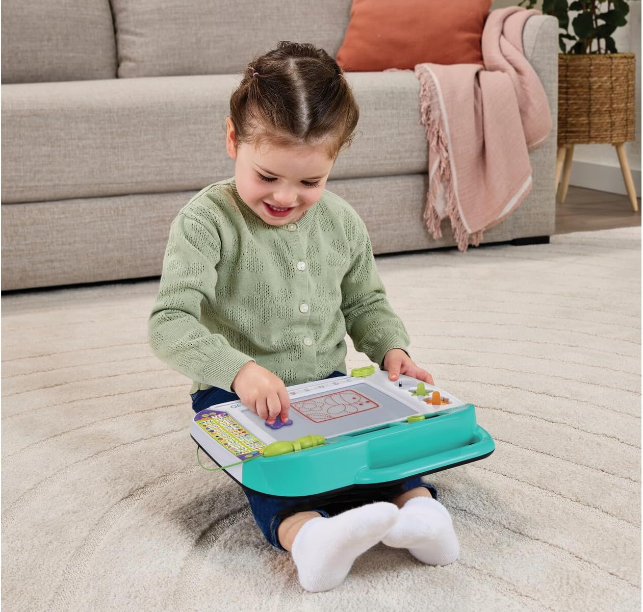 Versione spagnola: giocattolo educativo per bambini +3 anni. Contenuto in lingua spagnola. Impara lettere, numeri, forme e oggetti. Cestino artistico con schermo LCD per disegnare ancora e ancora: i bambini possono creare liberamente sulla lavagna, cancellare facilmente e ricominciare da capo, senza bisogno di carta o inchiostro. Guida vocale per le attività interattive: il giocattolo parla e guida i piccoli passo dopo passo in diversi giochi di disegno e apprendimento, incoraggiando l'autonomia e la concentrazione. Penna magica inclusa: consente di eseguire tratti precisi e divertenti sullo schermo, ideale per praticare la coordinazione occhio-mano e il controllo motore fine. Effetto stimolante Creatività e apprendimento: le modalità di gioco includono esercizi di tratto, disegno libero e possibilmente modelli, aiutare i bambini a esplorare il loro lato artistico e rafforzare le conoscenze di base. Facile da usare e portatile: ha un design robusto e leggero, ideale per il viaggio o giocare ovunque senza sporcare.