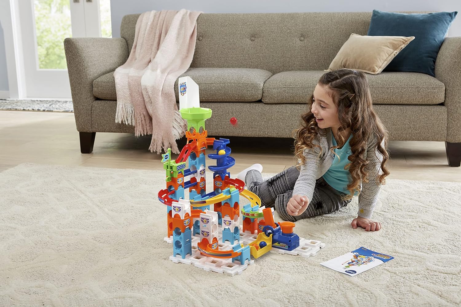 SUPER CIRCUITO: all'interno di questo set sono presenti 62 pezzi e 5 MarbleBiglie inclusi per creare un super circuito LANCIO POTENTE: incluso un lanciatore per lanciare le biglie in verticale e raggiungere il bersaglio e un’area di lancio per lanciare a tutta velocità le MarbleBiglie PASSAGGI SEGRETI: con questo set il tuo bambino potrà creare circuiti con tanti passaggi segreti e bivi CREATIVITÀ E LOGICA: i bambini sviluppano capacità motorie, creatività, logica e immaginazione creando infinite combinazioni MARBLE RUSH: questo set fa parte di una gamma innovativa di circuiti elettronici per biglie che forniscono tanta interattività e fantasia per ore e ore di gioco; set compatibile con altri set della gamma