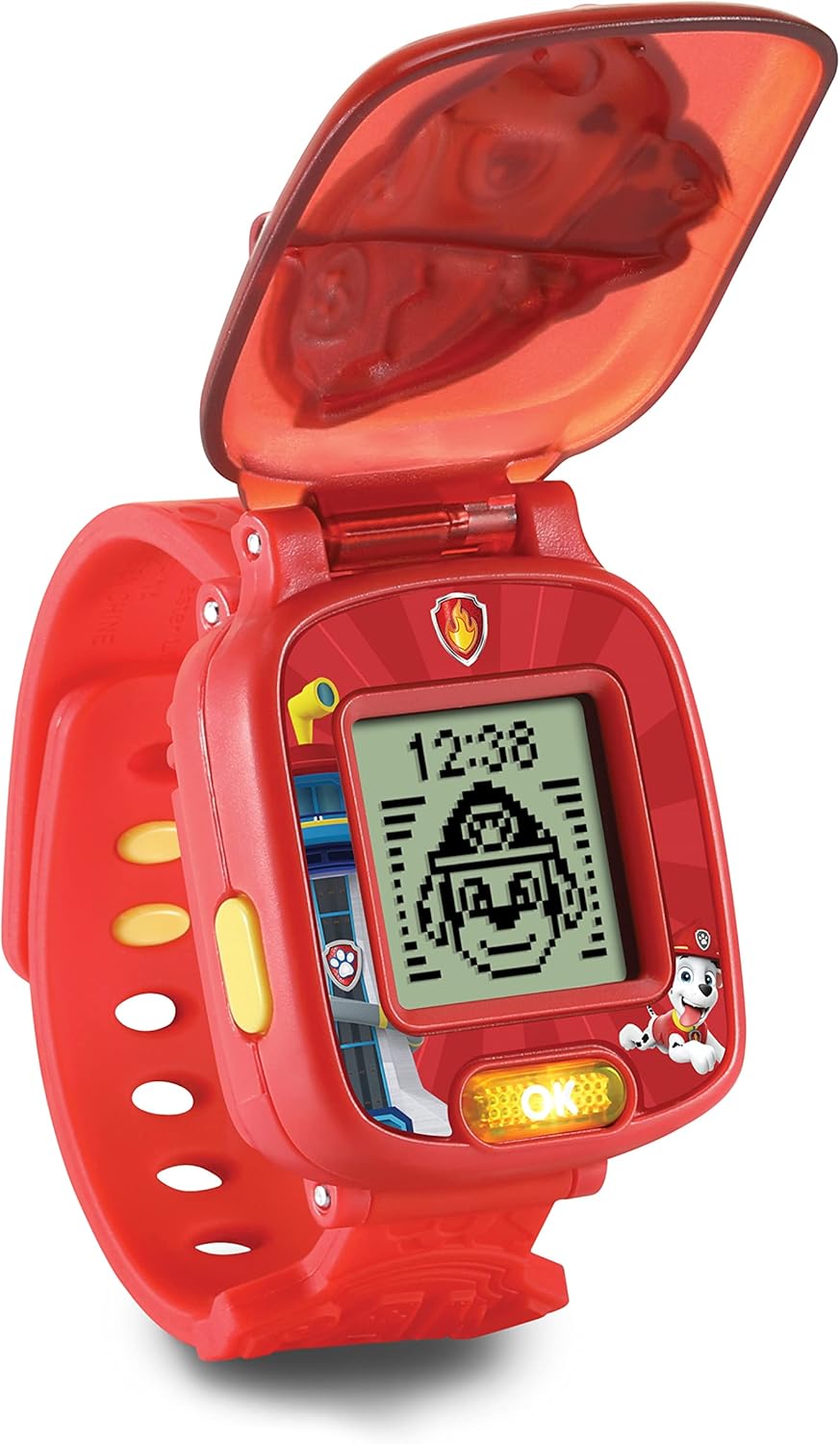 Vivi emozionanti missioni e affronta sfide con il cane dei pompieri Marshall: l'orologio della serie convince con varie funzioni, giochi e la copertina 3D con il volto di Marshall. Giusto in tempo per la missione di salvataggio: con timer, cronometro e sveglia con 3 diversi toni di allarme puoi tenere d'occhio l'ora: l'orologio a cucù commutabile suona ogni ora allo scoccare dell'ora. Giochi emozionanti sempre al tuo polso: i 4 giochi educativi sui temi del confronto di numeri, sequenze di numeri, memoria e capacità di reazione sempre per divertimento. Per veri fan: con l'orologio didattico di Marshall puoi alternare tra 10 quadranti PAW Patrol - con animazioni fantastiche, detti PAW Patrol e la voce originale del leader Ryder. La fornitura comprende: 1 orologio didattico VTech PAW Patrol Marshall / Vano batteria sicuro per i bambini e spegnimento automatico / Versione tedesca / Età 3-6 anni / 1 batteria dimostrativa CR2450 / Articolo n.: 80-551664