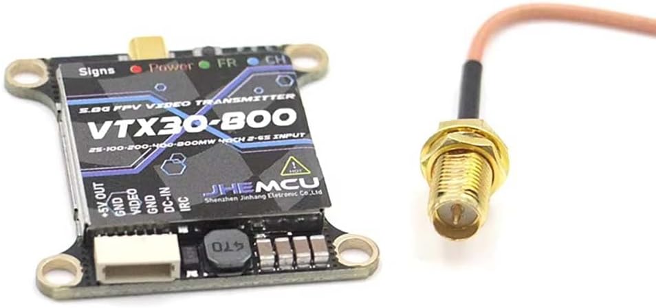 Le impostazioni di potenza regolabili da 25 mW a 800 mW soddisfano le varie esigenze dei droni da corsa FPV. La costruzione del materiale resiste alle alte temperature Distanza tra i fori di 30,5 x 30,5 mm e design leggero (6,8 g) semplificano il montaggio 40 canali garantiscono una comunicazione chiara nello spazio aereo affollato
