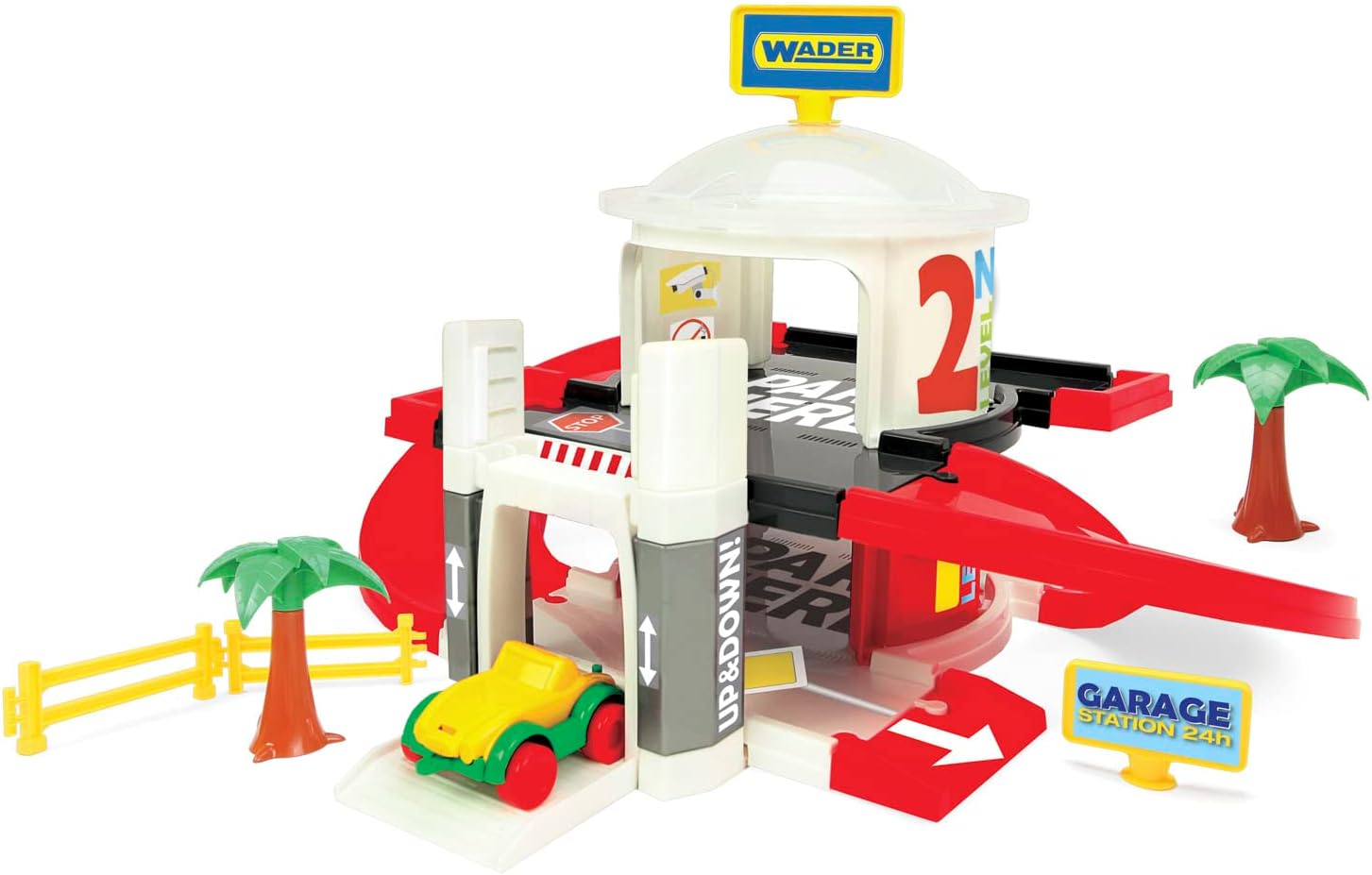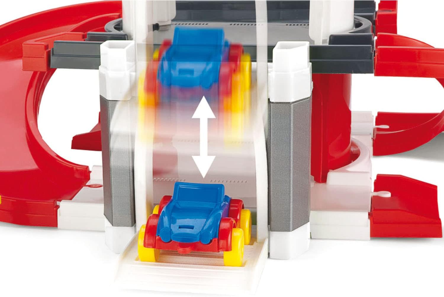il kit è composto da componenti multicolore e facili da assemblare che formano un garage a tre piani alto 34 cm e una strada di accesso al garage esterno lunga 1,8 metri il kit comprende: un ascensore per trasportare le macchinine a qualsiasi piano, 1 Kid Cars, numerose decorazioni (ad esempio cartelli, figure di alberi, barriere) e adesivi per aggiungere varietà al gioco struttura semplice da montare il giocattolo offre la possibilità di creare molteplici scenari di gioco il tutto realizzato con materiali di alta qualità, resistenti e sicuri per i bambini