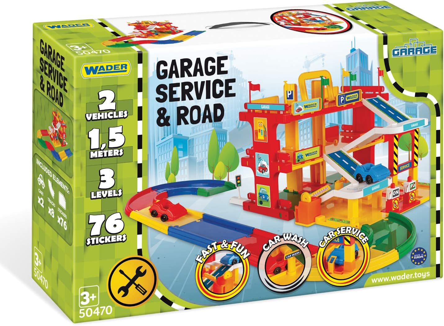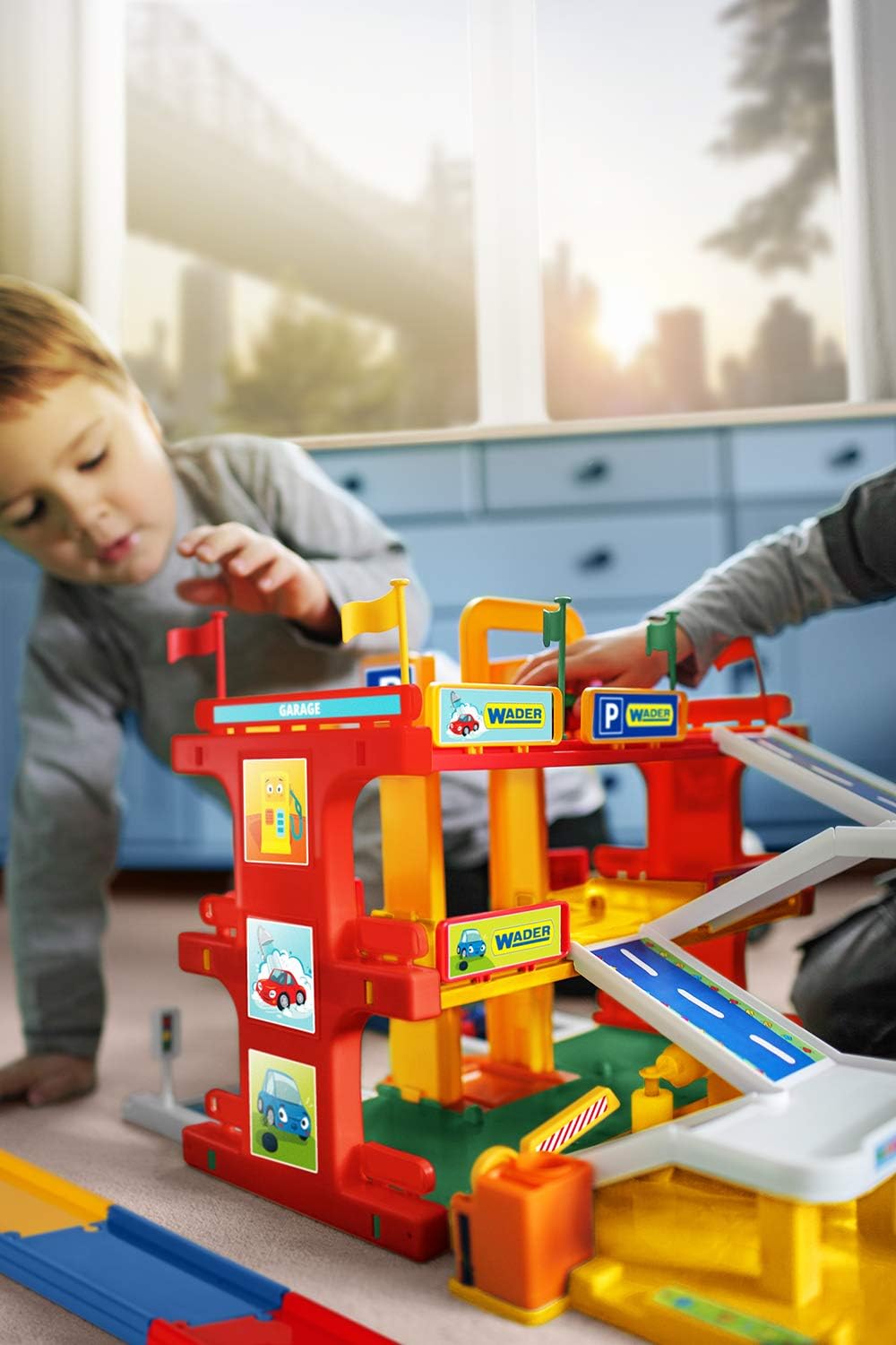 il kit è composto da componenti multicolori e facili da montare per creare un garage a più piani alto 36 cm e una porta esterna del garage lunga 3 metri. il set comprende: ascensore per trasportare le auto su qualsiasi piano, rampa, autolavaggio, distributore di carburante, servizio auto, numerose decorazioni, 2 auto e adesivi costruzione semplice da installare il giocattolo offre la possibilità di creare molteplici scenari di gioco il tutto realizzato in plastica di alta qualità, sicura per i bambini e resistente