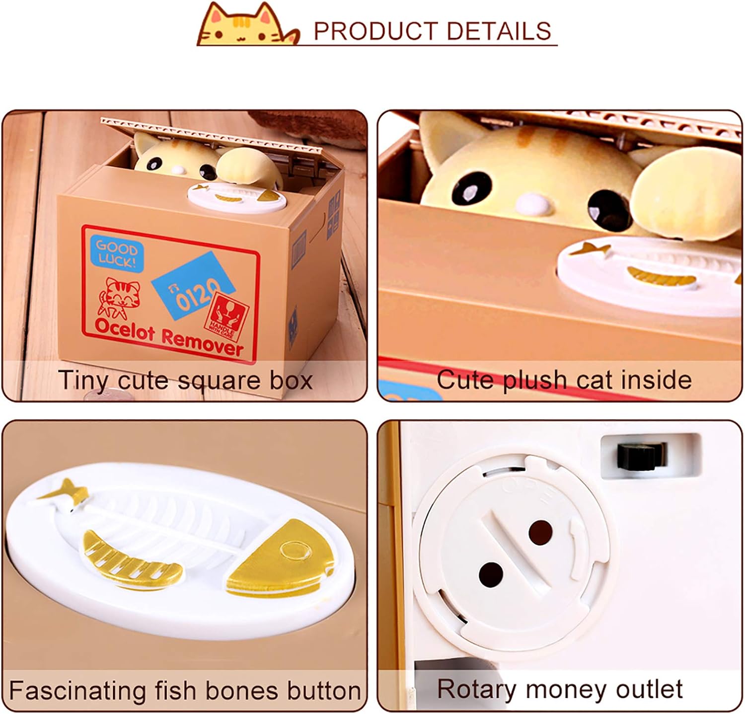 [Metodo di collezione divertente] Guarda mentre un piccolo gatto si allunga per prendere denaro posizionato sul piatto bianco, rendendo divertente e interattivo [Pnovelty] aggiunge un elemento di novità agli ambienti domestici e di lavoro, fungendo da funzione di collezione divertente [Impara le abitudini di risparmio di denaro] modo semplice e divertente per i bambini di tutte le età per comprendere il valore del salvataggio attraverso il carico design del gatto [Materiale premium] Costruito con componenti in plastica e elettronica ABS per funzionalità e durata uniche [I bambini ideali] aiuta a insegnare ai bambini la responsabilità finanziaria e l'importanza di risparmiare denaro fin da giovane, rendendolo un ideale