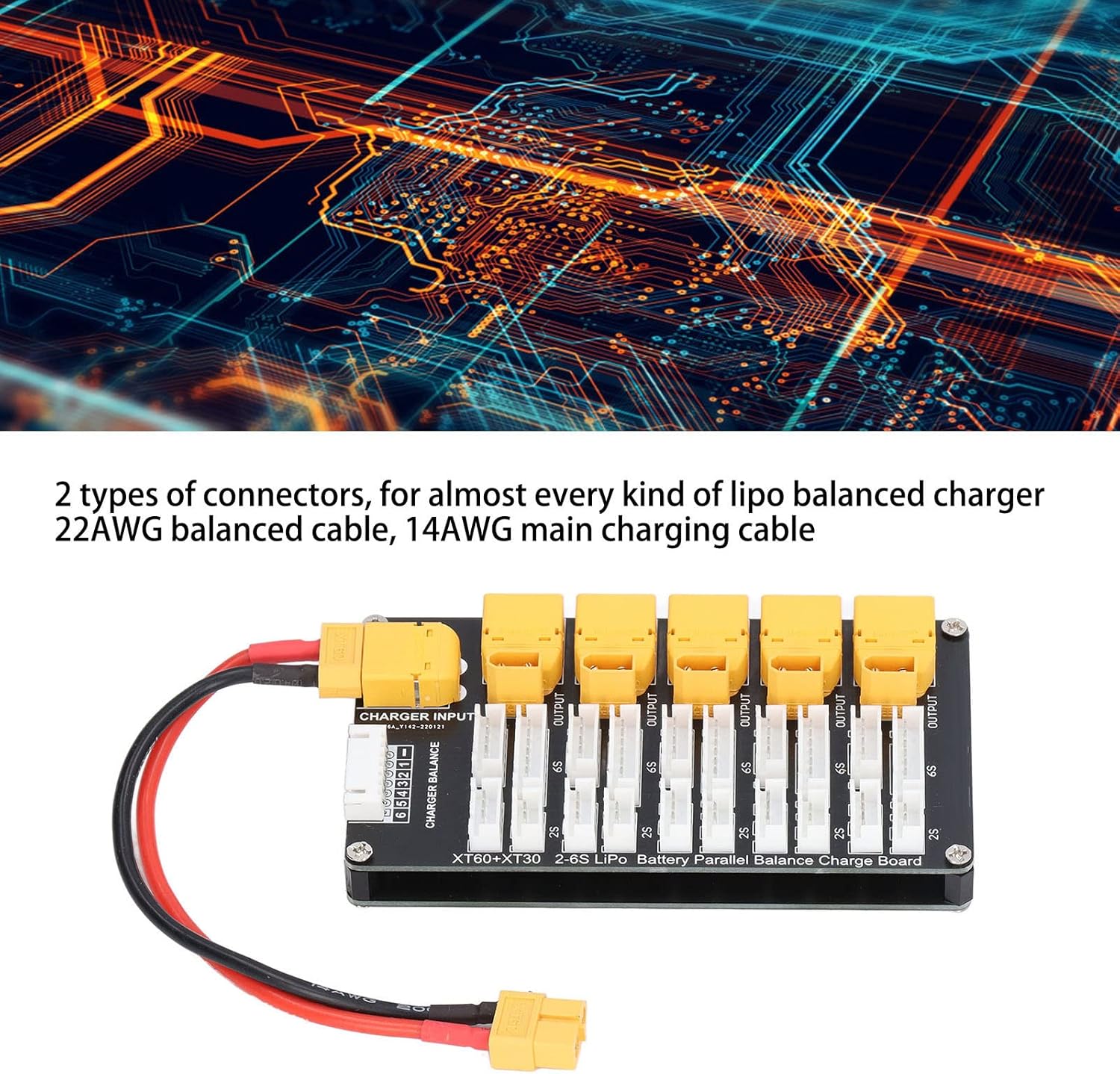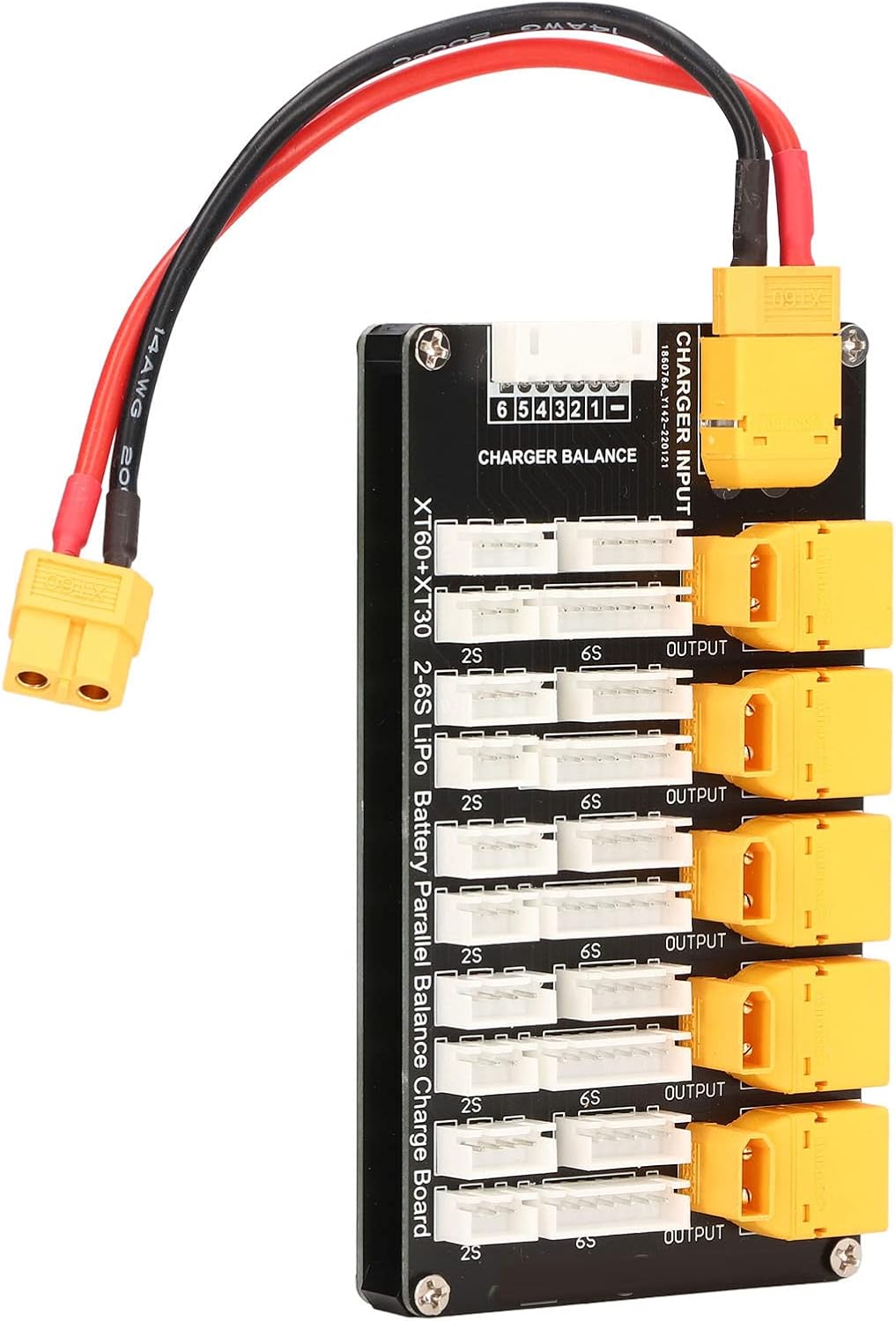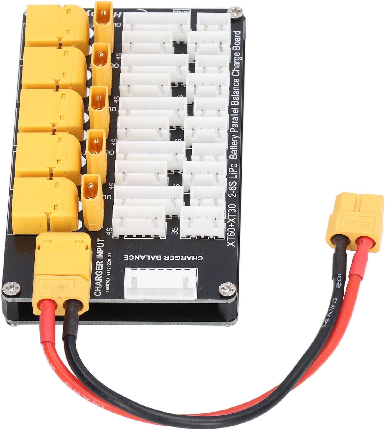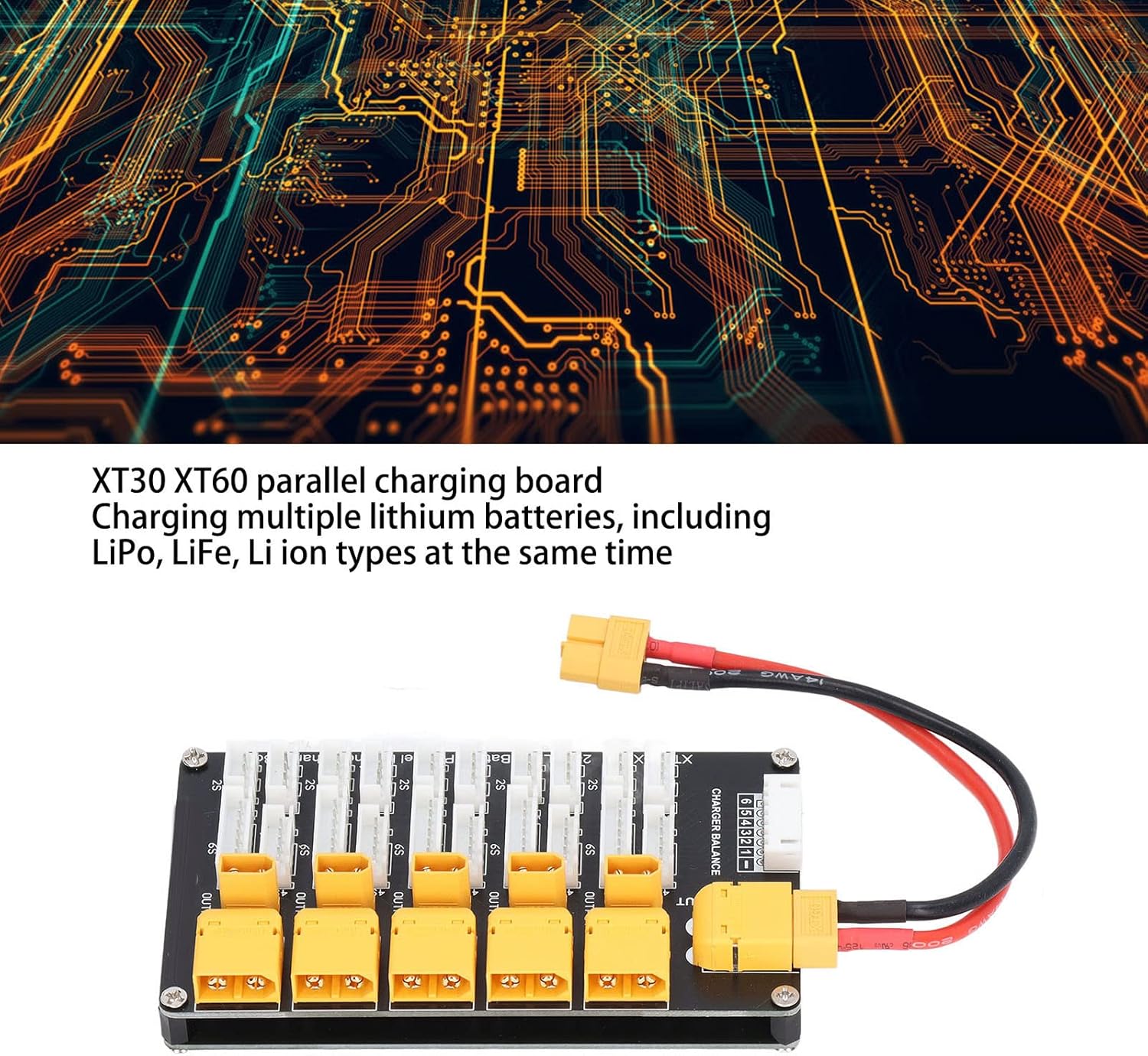 SUPPORTA 5 SET PACK BATTERIA: il caricatore per batteria Lipo supporta fino a 5 set di batterie 2-6S dello stesso tipo e nucleo (tranne 5S) Ricarica simultanea: scheda di ricarica parallela XT30 XT60 per la ricarica simultanea di più batterie al litio, tra cui tipi LiPo, LiFe, Li-ion RISPARMIO TEMPO: utilizzare un caricabatterie bilanciato che può caricare 5 batterie al litio contemporaneamente, risparmiando tempo di ricarica 2 CONNETTORI CAVO DI RICARICA: cavo di ricarica con 2 tipi di connettori per quasi ogni tipo di caricabatterie bilanciato lipo bilanciato, cavo bilanciato 22 AWG, cavo di ricarica principale 14 AWG COMPATIBILE CON VARI DISPOSITIVI DI CARICABILE: la scheda di ricarica parallela per batterie Lipo è compatibile con IMAX B6, Q6 Pro, D2 e T8 caricabatterie