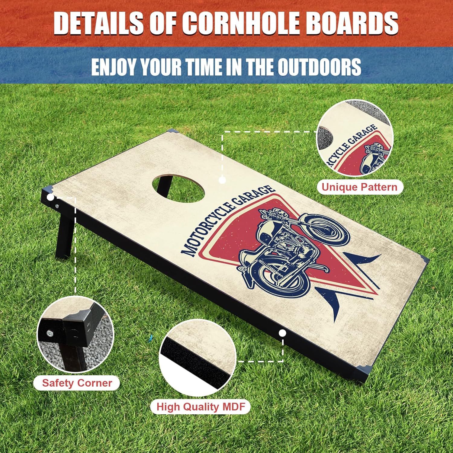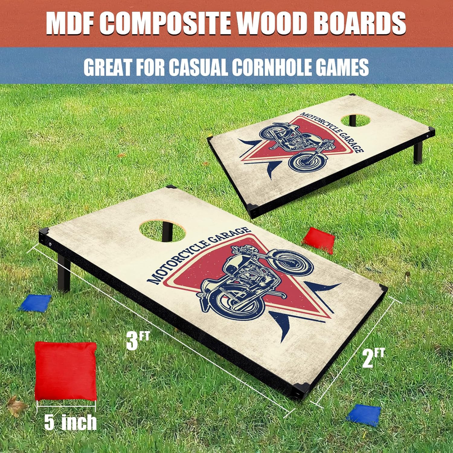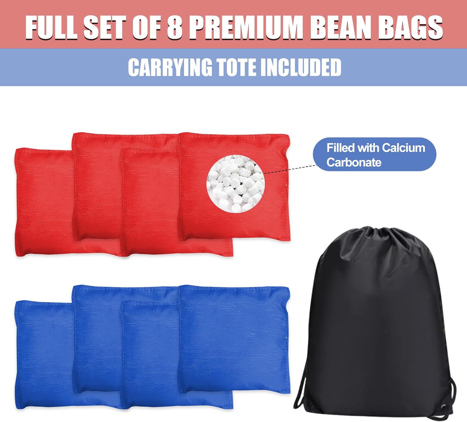 Classico set da gioco per cornhole: questo set completo include 2 tavole pieghevoli in legno MDF (3 x 2 '), 8 pouf per cornhole di dimensioni regolabili per tutte le stagioni e una resistente borsa per il trasporto con cerniera Oxford. Ideale per il cortile e il divertimento all'aperto con la famiglia e gli amici Struttura robusta: realizzata in legno MDF di alta qualità con uno spessore del telaio di 4 cm, la nostra tavola cornhole regolabile garantisce resistenza e durata. Due staffe pieghevoli impediscono deformazioni e rimbalzi, rendendolo perfetto per un divertimento di lunga durata Esclusiva tecnologia di stampa a calore: grazie all'esclusiva tecnologia di stampa a caldo, le nostre tavole per cornhole si distinguono per il loro motivo retrò. Il design è resistente ai graffi e allo sbiadimento, garantendo che il tuo set di gioco sembri vivace e nuovo anche dopo un uso prolungato Giochi e attività all'aperto: con gambe pieghevoli, questo set per cornhole è facile da trasportare a feste, gite in campeggio, spiagge, prati o cortili. Goditi il classico gioco di lancio del pouf ovunque tu vada, adatto a tutte le età Garanzia: Garantiamo soddisfazione al 100%. Se riscontri problemi di qualità, offriamo un rimborso completo o una sostituzione. Hai qualche problema? Contattaci per assistenza tempestiva