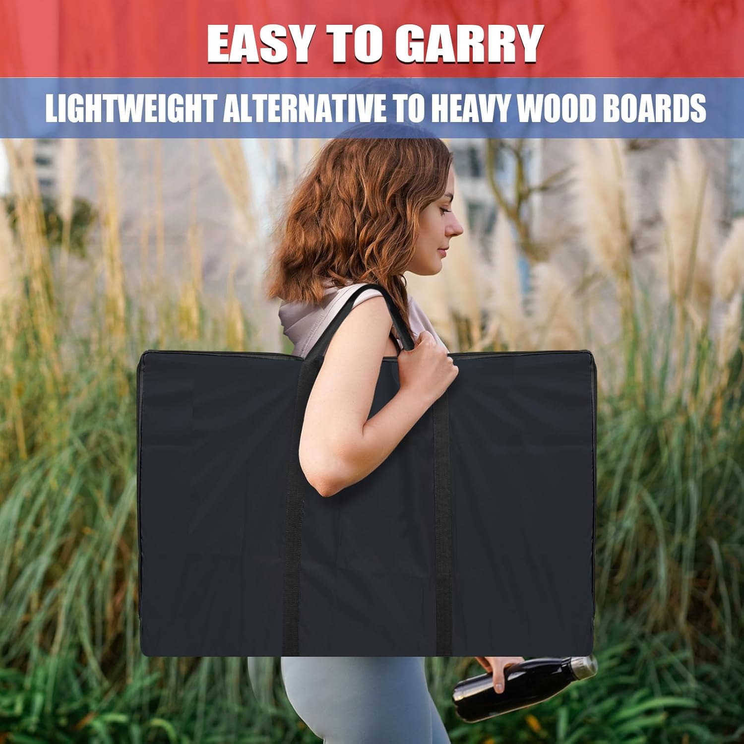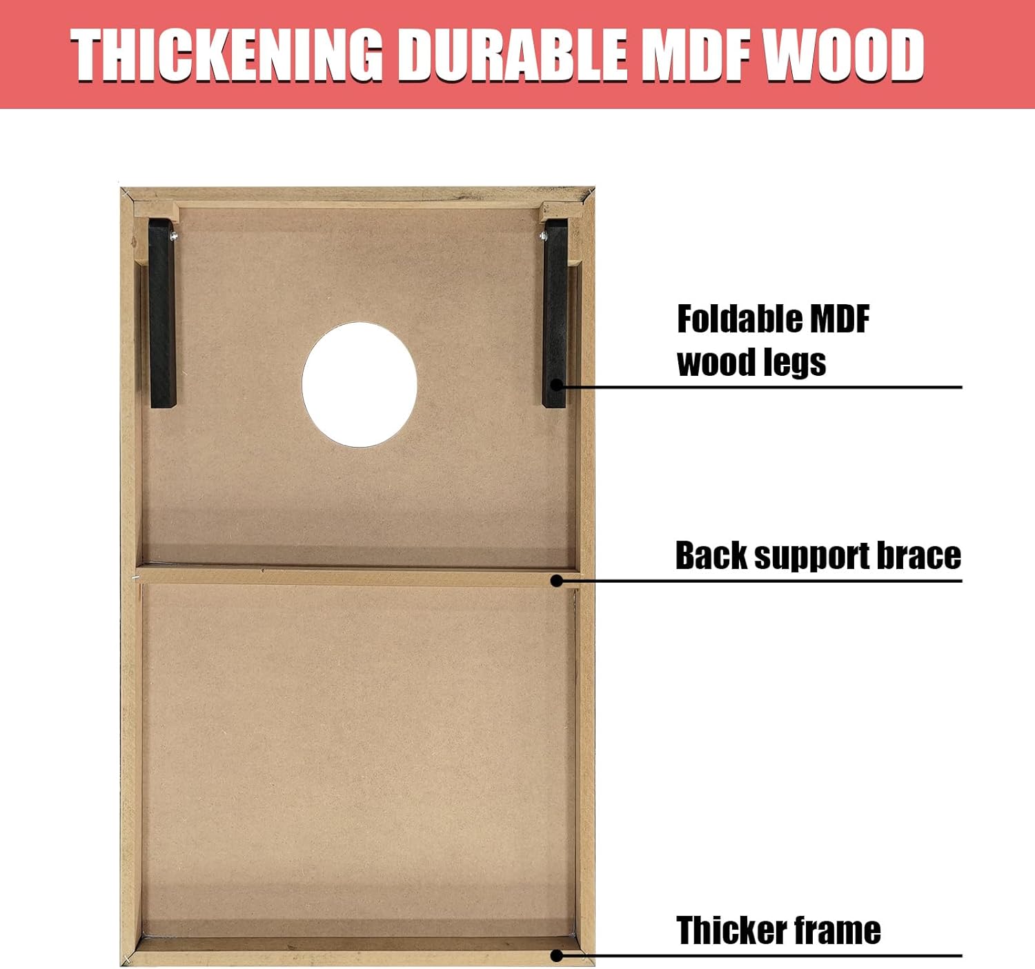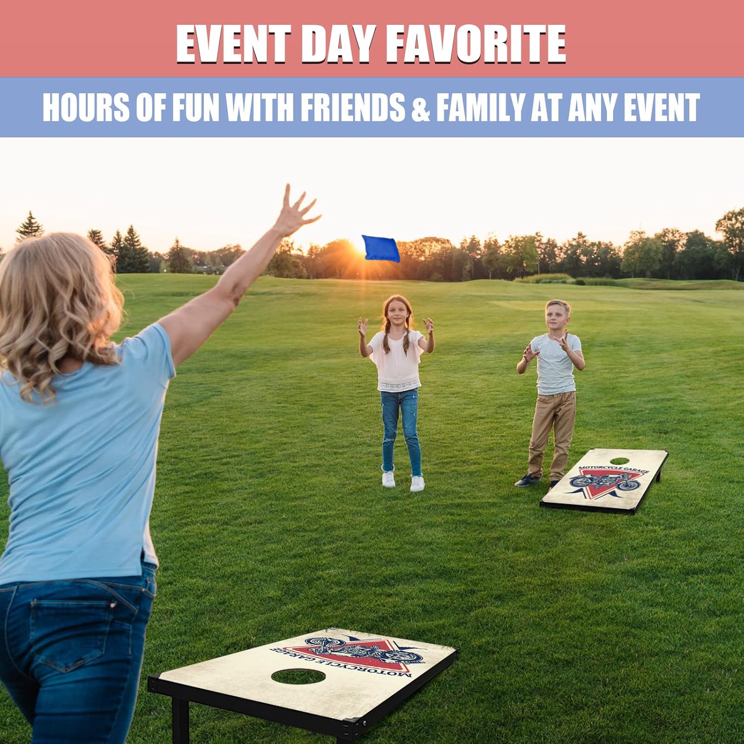 Classico set da gioco per cornhole: questo set completo include 2 tavole pieghevoli in legno MDF (3 x 2 '), 8 pouf per cornhole di dimensioni regolabili per tutte le stagioni e una resistente borsa per il trasporto con cerniera Oxford. Ideale per il cortile e il divertimento all'aperto con la famiglia e gli amici Struttura robusta: realizzata in legno MDF di alta qualità con uno spessore del telaio di 4 cm, la nostra tavola cornhole regolabile garantisce resistenza e durata. Due staffe pieghevoli impediscono deformazioni e rimbalzi, rendendolo perfetto per un divertimento di lunga durata Esclusiva tecnologia di stampa a calore: grazie all'esclusiva tecnologia di stampa a caldo, le nostre tavole per cornhole si distinguono per il loro motivo retrò. Il design è resistente ai graffi e allo sbiadimento, garantendo che il tuo set di gioco sembri vivace e nuovo anche dopo un uso prolungato Giochi e attività all'aperto: con gambe pieghevoli, questo set per cornhole è facile da trasportare a feste, gite in campeggio, spiagge, prati o cortili. Goditi il classico gioco di lancio del pouf ovunque tu vada, adatto a tutte le età Garanzia: Garantiamo soddisfazione al 100%. Se riscontri problemi di qualità, offriamo un rimborso completo o una sostituzione. Hai qualche problema? Contattaci per assistenza tempestiva