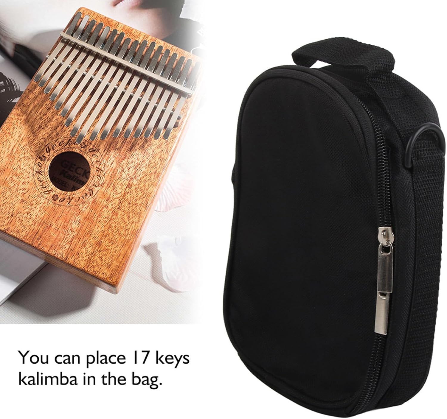 [Protezione durevole] L'interno imbottito assorbe gli urti e protegge il tuo Kalimba a 17 tasti dagli urti durante il viaggio. [Archiviazione versatile] Due strati intermedi per accessori e oggetti personali per mantenere i tuoi oggetti essenziali organizzati mentre sei in movimento. [Comodo trasporto] Dotato di una comoda maniglia e tracolla per un facile trasporto sulla spalla o sul collo. [Dimensioni compatte] Misura 22 x 16,5 x 6,5 cm, leggero con 168 g e ideale per i musicisti che viaggiano con i loro strumenti. [Aspetto elegante] Materiale in nylon e spugna combinato con un design elegante, per musicisti e appassionati.