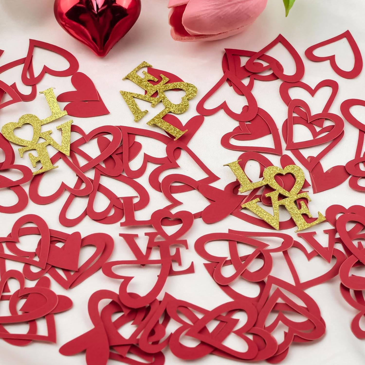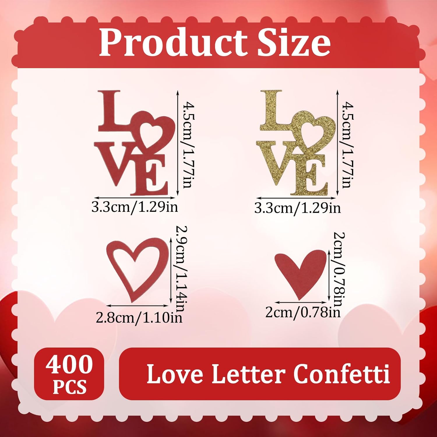 CONFEZIONE DEL PRODOTTO - La confezione contiene 400 coriandoli per decorazioni per feste, ovvero 200 stili di lettere a forma di cuore rosso + 200 coriandoli a forma di cuore rosso e lettere dorate. 【Materiale di qualità】 I coriandoli romantici del cuore d'amore di San Valentino sono realizzati in materiale cartaceo di alta qualità, portatile e leggero, la carta è ispessita e strutturata, non facile da strappare e danneggiare durante l'utilizzo. Design scintillante: i coriandoli glitterati con lettere dorate brillano sotto la luce, i coriandoli sono accattivanti, leggeri e resistenti, rendendo la tua tavola più delicata e scintillante. 【Ampiamente usato】 Questi coriandoli per feste sono adatti per decorare la superficie degli oggetti, ideali anche per decorazioni di nozze, addio al nubilato, feste di fidanzamento, anniversari, San Valentino e altre occasioni speciali. Decorazione di San Valentino: decorazioni di coriandoli di San Valentino con colori rosso e oro romantici e appassionati, aggiungono un'atmosfera più dolce e romantica a San Valentino.