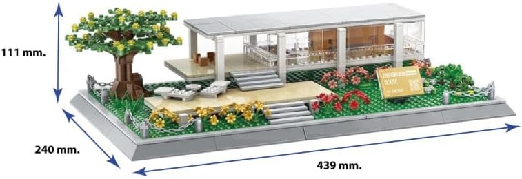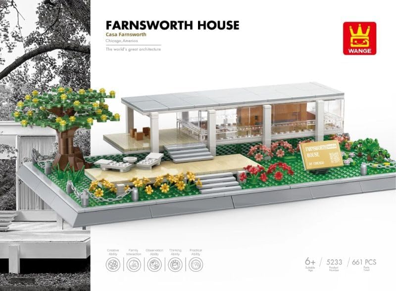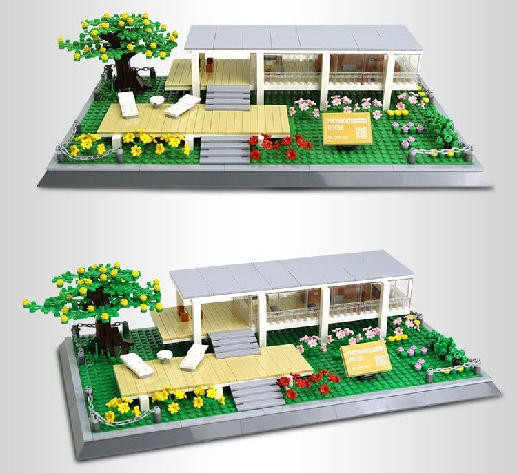 Set per costruire una riproduzione della Farnsworth House dell'architetto Ludwig Mies van der Rohe. Dettagli eccellenti grazie al gran numero di pezzi. Consigliato a bambini e adulti esperti di set di costruzioni. L'assemblaggio di questo modello in scala è una vera sfida per gli appassionati di set di blocchi. Con oltre 650 pezzi, è possibile costruire un modello finale di 44 x 24 x 11 cm di altezza. La linea di modelli architettonici con il maggior numero di pezzi sul mercato, garantisce ore di divertimento. I pezzi sono compatibili con le marche di set di blocchi più diffuse sul mercato, consentendo aggiunte e modifiche. Età consigliata per la sua difficoltà: dai 6 anni.