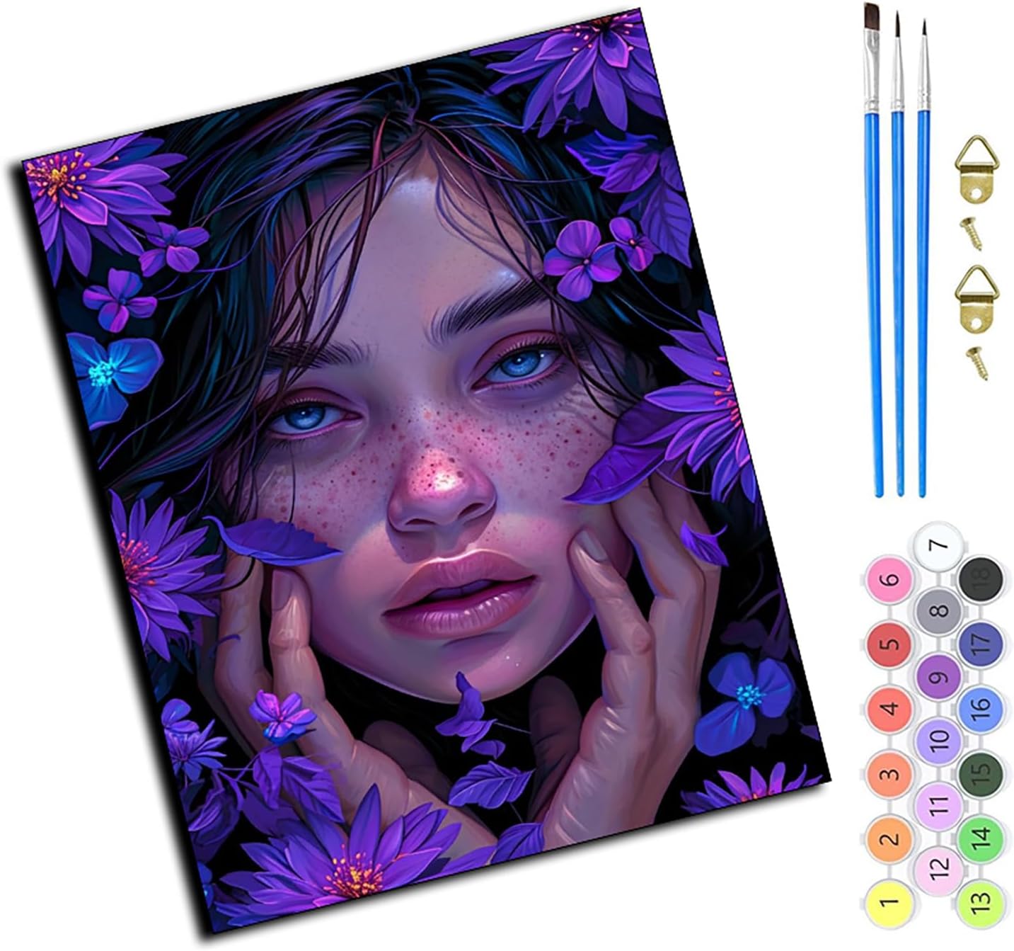 WANGXIAO Pittura con numeri per adulti e, kit di pittura con numeri con pennelli e dipinti, quadri per dipingere con numeri, 40 x 50 cm, bellezza del fiore notturno viola, senza cornice
